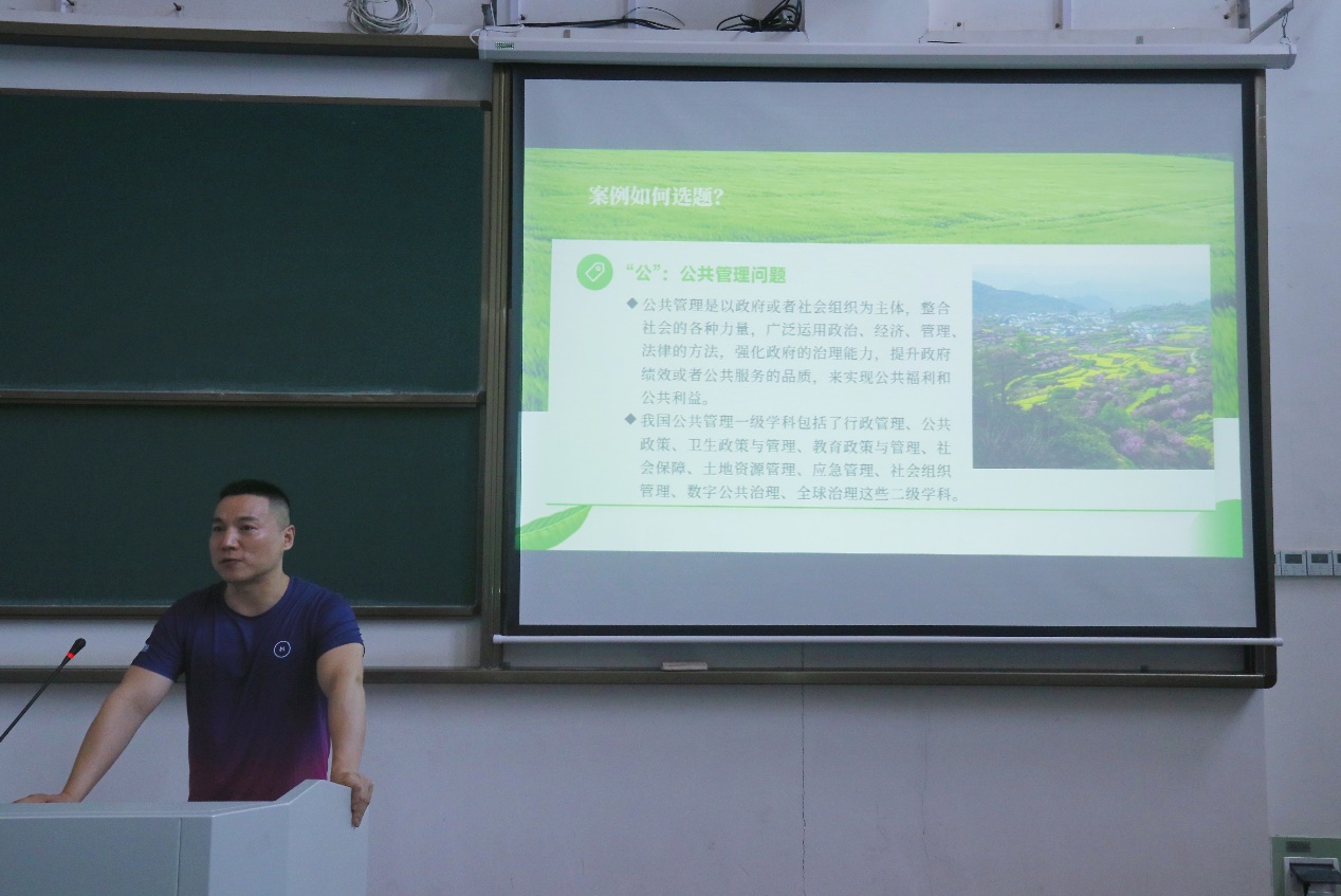 讲座伊始,钟海玥老师为同学们介绍了公共管理案例大赛的赛事流程和要求。随后,高猛老师从“选题、构思和写作”三个角度为同学们详细介绍了公共管理案例大赛,高老师着重讲解了“选题”这一主题。高老师指出,定义问题的高度决定了解决问题的深度。随后,高老师就亲身对选题争论的经历引入“如何选题”这一主题,后又分别从“真”问题、“实”问题、“趣”问题三个方面层层剖析,对研究问题的选择展开了细致入微的讲解。高老师在理论讲解的同时,还插入三份真实案例来提升同学们敏锐的问题意识、科学的分析能力和创新的思维方式。除此之外,高猛老师还特别强调,只有直击社会痛点、放大矛盾端才能写出优质的公共管理案例。