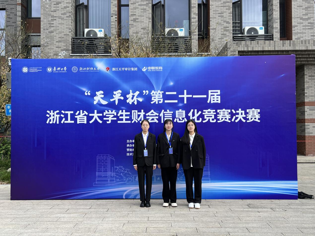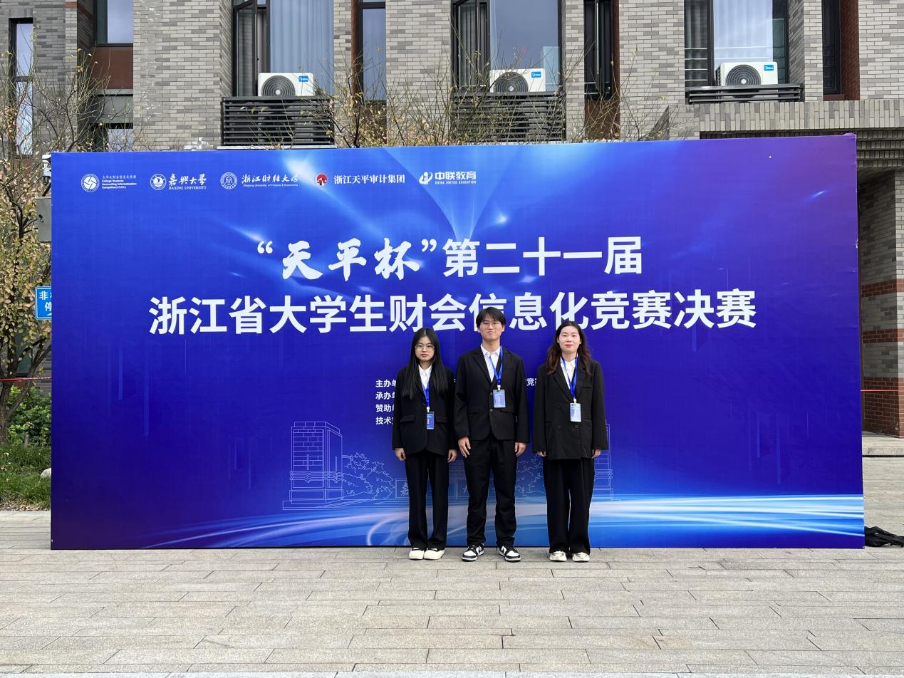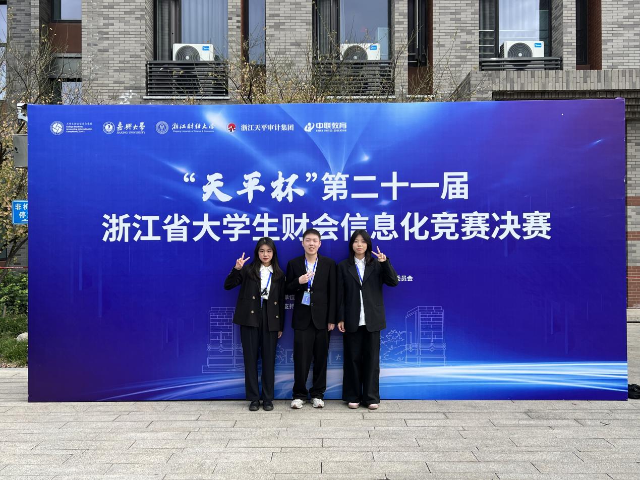 2024年11月9日,由浙江省教育厅、浙江省大学生科技竞赛委员会主办,嘉兴大学、浙江财经大学承办的“天平杯”第二十一届浙江省大学生财会信息化竞赛决赛在嘉兴大学成功举办。黄色网站 6组参赛队伍在叶海英、赵珍、李征三位教师的指导下全部获奖,在该项竞赛上斩获2项省一等奖、4项省二等奖的优异成绩,并以初赛复赛总分第一的成绩拿到“竞赛之星”荣誉称号,为黄色网站 在该项竞赛上取得历史性突破。