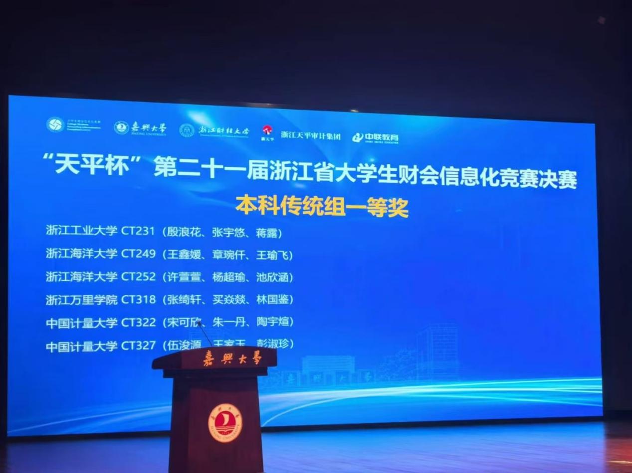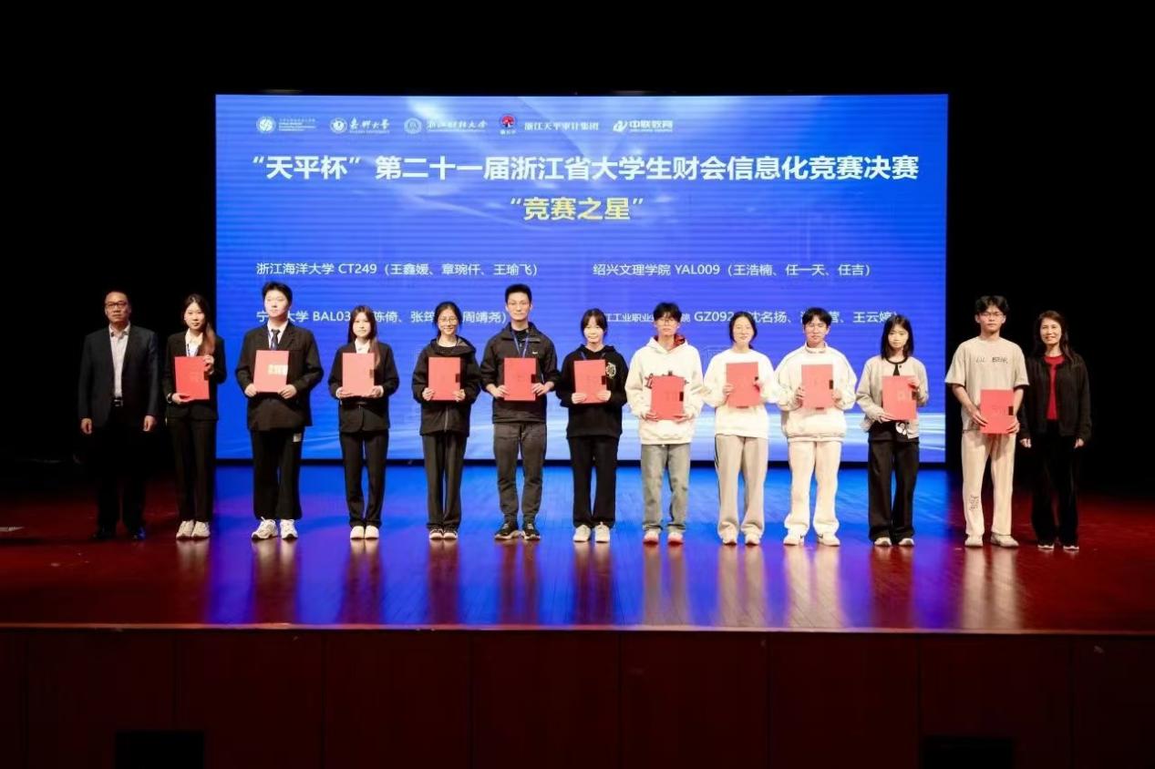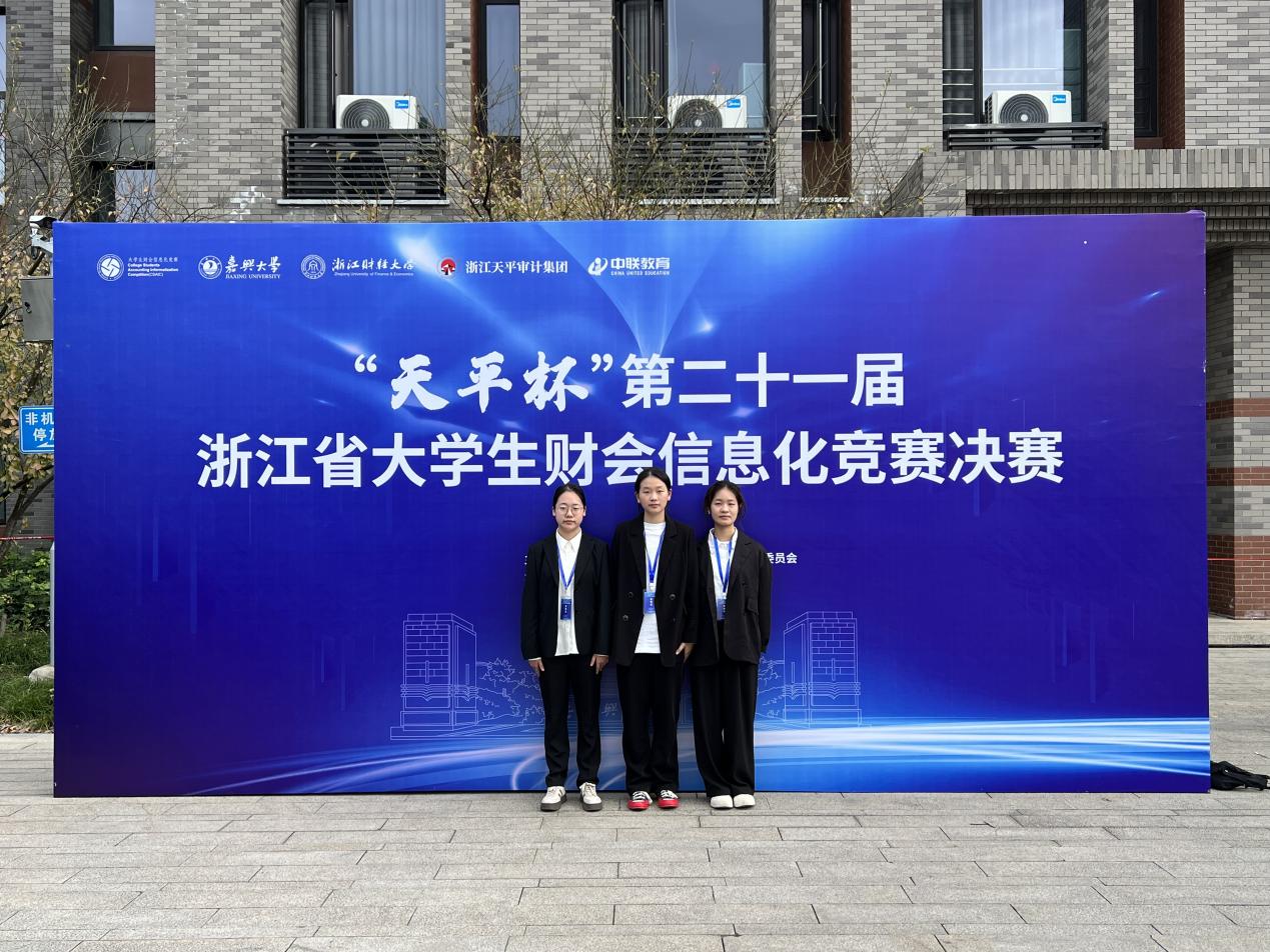 2024年11月9日,由浙江省教育厅、浙江省大学生科技竞赛委员会主办,嘉兴大学、浙江财经大学承办的“天平杯”第二十一届浙江省大学生财会信息化竞赛决赛在嘉兴大学成功举办。黄色网站 6组参赛队伍在叶海英、赵珍、李征三位教师的指导下全部获奖,在该项竞赛上斩获2项省一等奖、4项省二等奖的优异成绩,并以初赛复赛总分第一的成绩拿到“竞赛之星”荣誉称号,为黄色网站 在该项竞赛上取得历史性突破。
