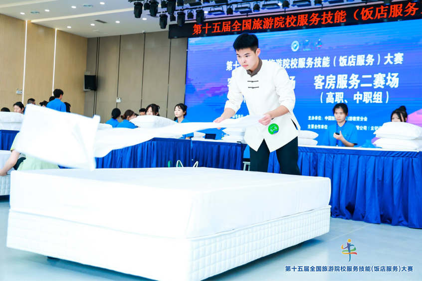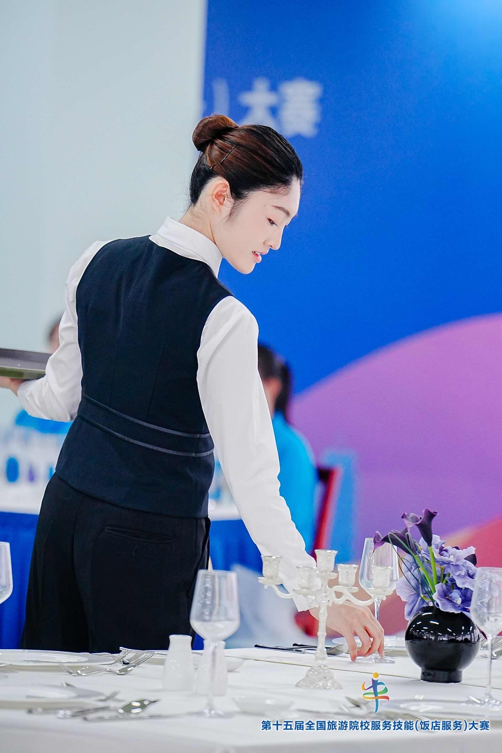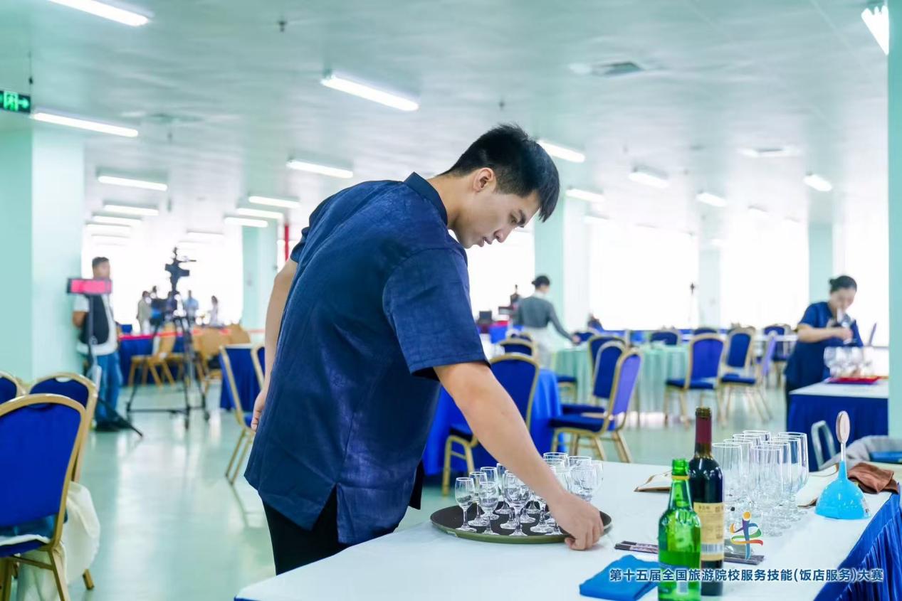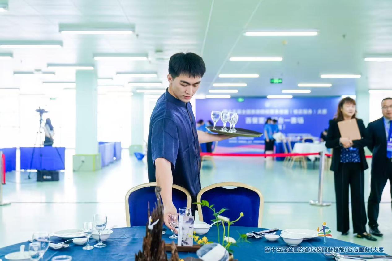 全国旅游院校服务技能大赛自发起举办到形成品牌的15年间,是我国旅游教育领域规模最大、全面覆盖中高职及本科院校的品牌赛事。从2023年开始,文化和旅游部市场管理司作为大赛指导单位,对本项赛事质量提升具有里程碑意义。据悉本次大赛共有来自全国28个省、自治区、直辖市的185所院校参赛队的596名选手同台竞技。比赛分本科院校、高职高专院校、中职学校三个组别,设中餐宴会摆台、西餐宴会摆台、客房服务和鸡尾酒调制四个赛项,从现场操作、综合理论知识考核、英语水平测试三个环节展开角逐,着眼于在人工智能等技术变革中对人才素养和能力的新需求,注重专业技能基础训练,强调知行合一和创新创意,通过以赛促学、以赛促教、以赛促研,有力推动了知识学习和运用的范式创新,深化了产教融合和校企合作,推动了人才培养与文旅行业发展相适应,提升了旅游教育的质量和水平,为广大青年学子提供了技能成才的广阔舞台和职业发展前景。