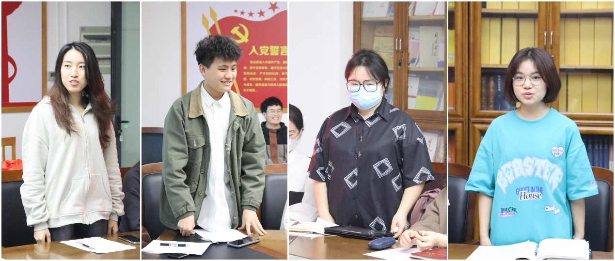 接着,两支部党员就习近平总书记重要讲话精神展开了深入讨论。来自财务管理专业学生第二党支部的黄佳宁、周浩锋同学以及药学系学生党支部的韩榕、叶韩薇同学,结合专业实际、校情国情分享了自己的感悟和见解。大家纷纷表示,会坚定不移听党话、跟党走,努力成长为堪当民族复兴重任的时代新人。讨论过后,双方就支部建设、党日活动、党员未来发展与规划等方面进行相互探讨,施辰阳和吴宇老师就大家提出的问题逐一进行了解答,也希望未来双方要多进行探讨学习,进行更深层次的交流。
