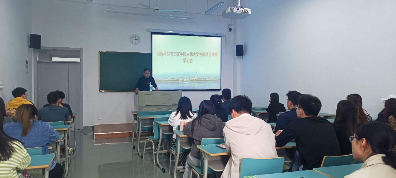 首先,杨小波老师带领支部成员集中学习了习近平总书记在中国人民大学考察时的重要讲话精神,杨老师指出习近平总书记的重要讲话体现了党中央对青年的热情关怀和对青年工作的高度重视,对于当代青年健康成长、全面发展,对于做好新时代党的青年工作具有重要意义。随后,党员同志们也畅谈感想收获,纷纷表示要深入学习领悟总书记的重要讲话精神并付诸实际行动,以梦为马,不负韶华,在青春的赛道上奋力奔跑,争取跑出当代青年的最好成绩。