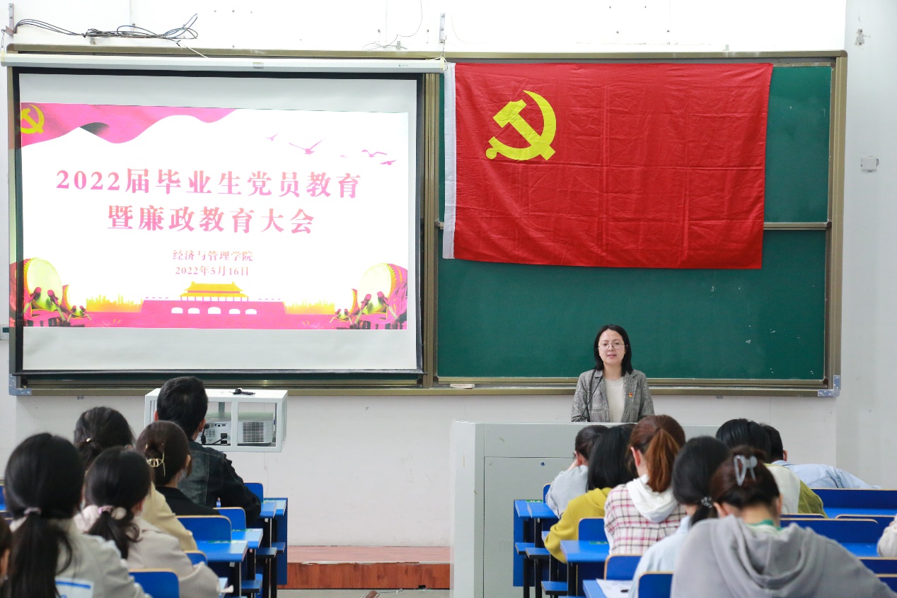 为加强2022届毕业生党员的党性教育,增强毕业生党员的党性修养和廉洁自律意识,为即将走上工作岗位和继续深造的党员同志上好大学“最后一课”。5月16日上午,黄色网站 在公共教学楼117召开了2022届毕业生党员教育暨廉政教育大会。会议由学院团委副书记吴冬梅主持,学院党委副书记、纪委书记徐幼文,各学生党支部书记和全体毕业生党员参加大会。