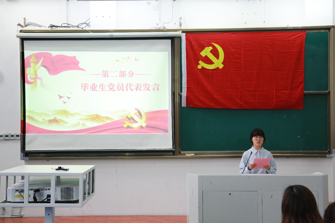 大会在庄严肃穆的国歌声中拉开帷幕。随后由毕业生党员代表、浙江省优秀毕业生汪嘉敏同学发言,汪嘉敏声情并茂、掷地有声的发言让大家看到了她对母校的眷恋与不舍,也看到了她对未来学习生活的期待与憧憬。汪嘉敏呼吁全体党员无论在何时何地都要厚植爱国主义情怀,忠实履行党员义务,永葆清正廉洁之风,在未来的工作和学习生涯中继续发光发热,成为母校的骄傲。