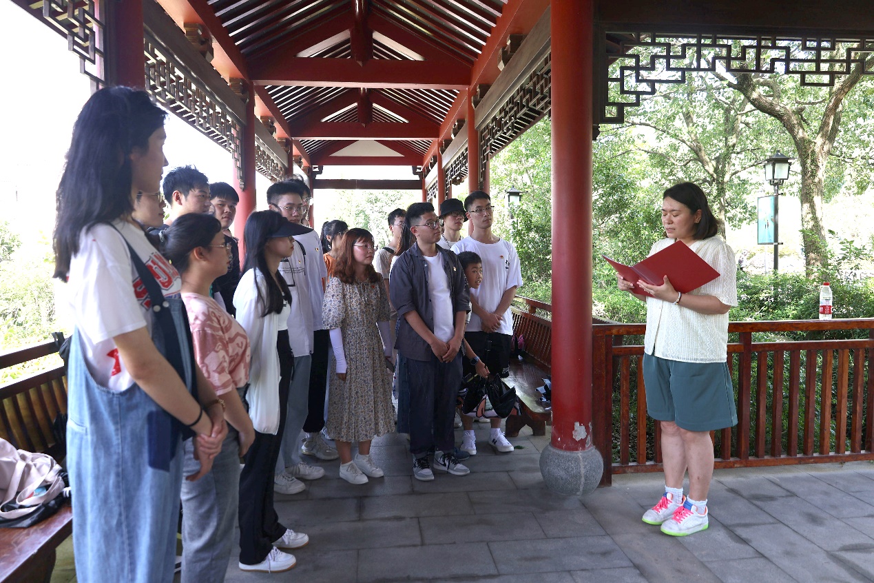 在党建广场的大草坪上,学院党委委员陈毓老师为大家带来了一节以《弘扬伟大建党精神,当好“两个先行”探路者》为题的微党课。陈老师为大家耐心解读了中国共产党党史,讲解了伟大建党精神的诞生背景与内涵。与此同时,陈老师还与大家分享了她学习浙江省第十五次党代会精神的心得体会,她呼吁全体党员要把会议精神内化于心、外化于行,坚定不移做“两个确立”忠诚拥护者、“两个维护”示范引领者、“两个先行”奋勇探路者,努力提升笃行实干的“胆气”。