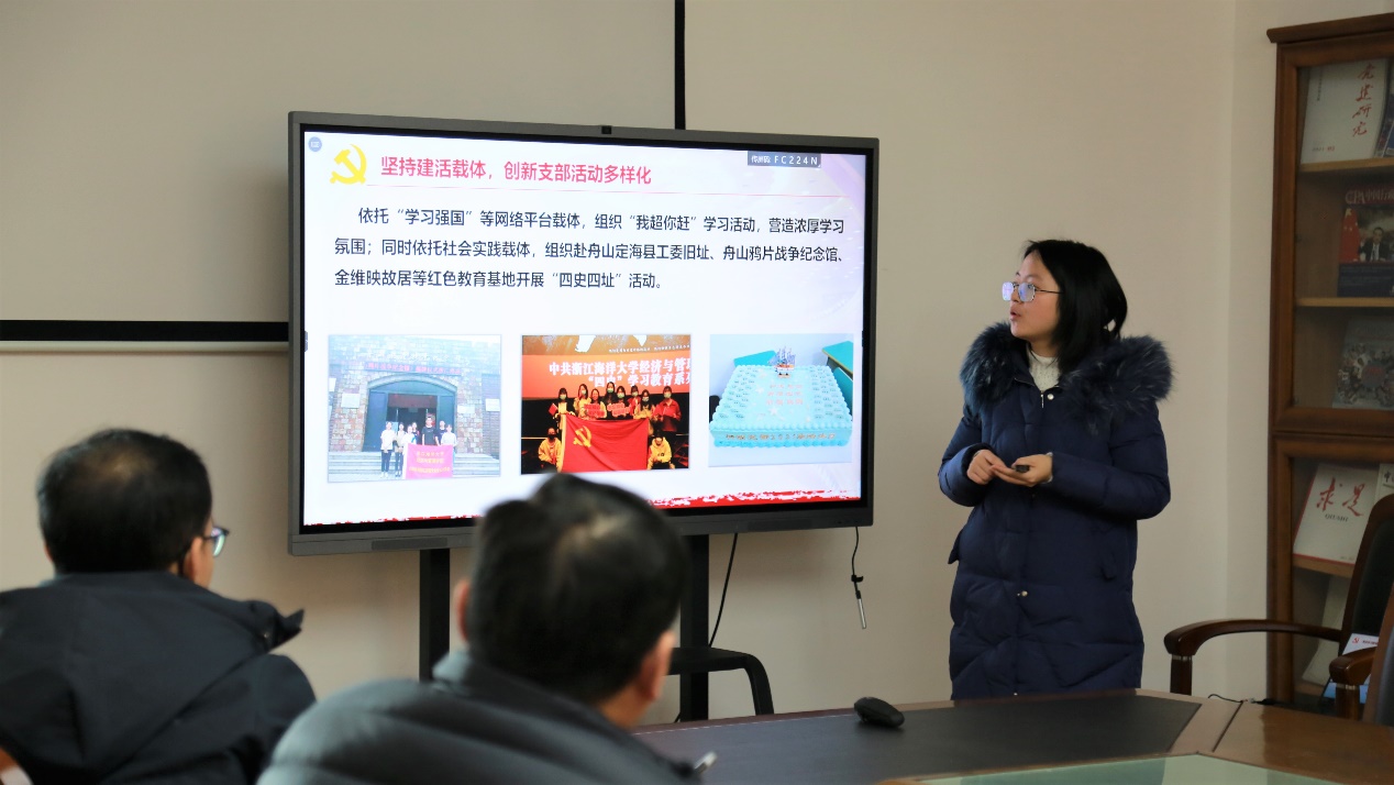 首先,两院就学生党建工作开展经验交流。付宗国老师以党史学习教育为例,分享了食药学院学生党建工作开展的相关经验。付老师指出,学生党建工作应以习近平新时代中国特色社会主义思想为指导,追求内容“鲜活”、主题“鲜明”、形式“鲜亮”,努力从四个方面发力:加强党建创新,夯实组织基础;加强立德树人,构建育人体系;加强学科建设,开拓事业新局;促进产业发展,练就担当作为。随后,吴冬梅老师也分享了经管学院在党建工作方面取得的四个成果:突出规范标准,体制机制建设进一步完善;突出政治引领,思想根基进一步筑牢;突出队伍建设,担当尽责共识进一步形成;突出细致服务,群团工作再上新台阶。