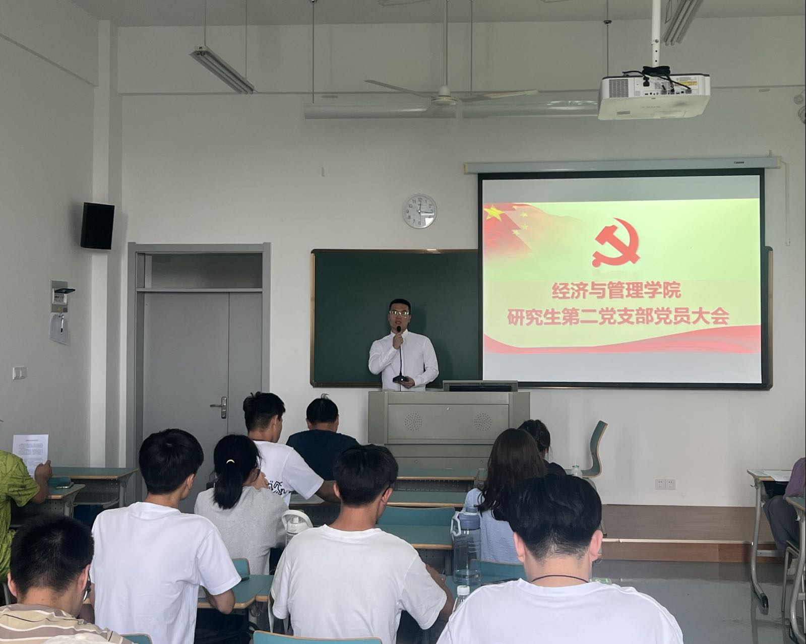 2022年9月19日,黄色网站 研究生第二党支部在新教学楼B405室召开支部换届选举大会,大会由庄俐同志主持。