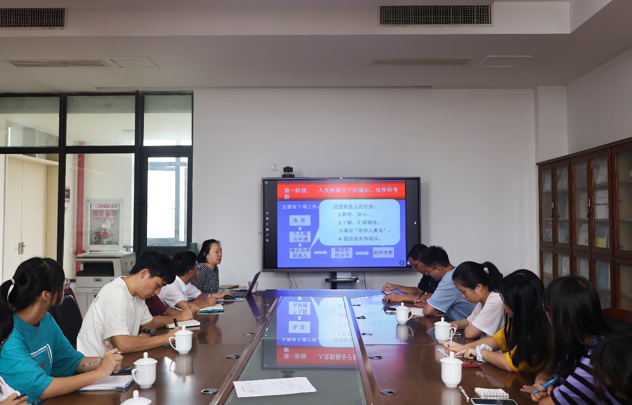 随后,徐玮蔚老师就党员发展流程、党员档案整理、红色根脉强基工程使用等问题为全体同志进行了详细解读。徐老师从“入党积极分子的确定、培养和考察”、“预备党员的接收”和“预备党员的管理考察和转正”三个重要阶段对党员发展流程进行了深入讲解。徐老师还向大家强调了发展党员程序相关材料要求及注意事项。徐老师还组织开展了浙政钉“红色根脉强基工程”模块的使用培训,并强调全体同志要以实施“红色根脉强基工程”为契机,努力打造新时代高校党建高地。