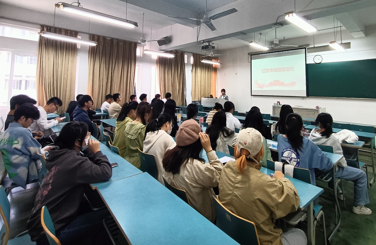 2022年10月22日,经济学专业学生党支部带领A22经济1团支部全体成员在定海校区教学楼457开展《理想照耀汇中国》红歌传唱活动。活动中,伴随着悠扬的红歌背景音乐,A22经济1的同学们在党员庞磊和张雯翔同志的带领下畅所欲言,分享着成长过程中受到红色历史故事和前辈先烈的影响,从而产生的观念或行动上的变化。团支部成员的发言激发了每一名同学的爱国情感,随后全体共同歌唱红色歌曲《理想照耀中国》,共庆党的二十大胜利召开。