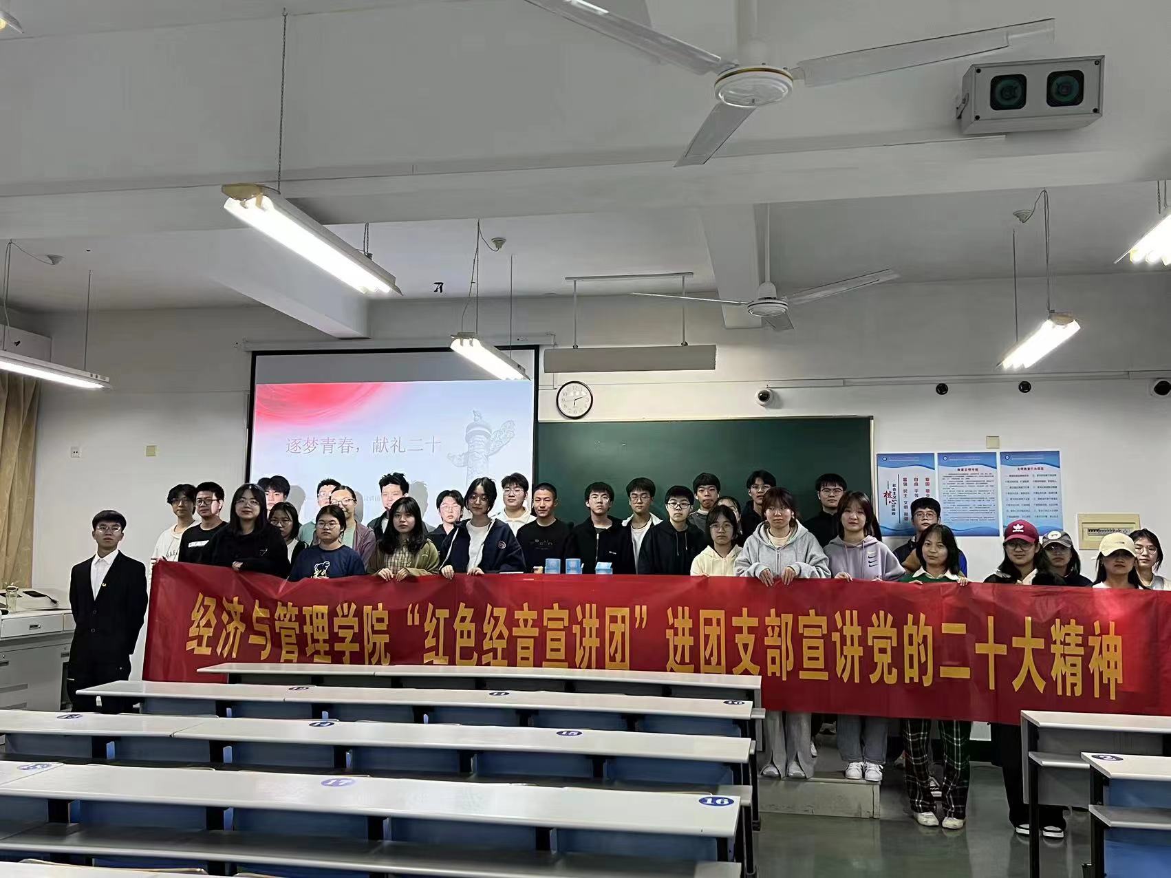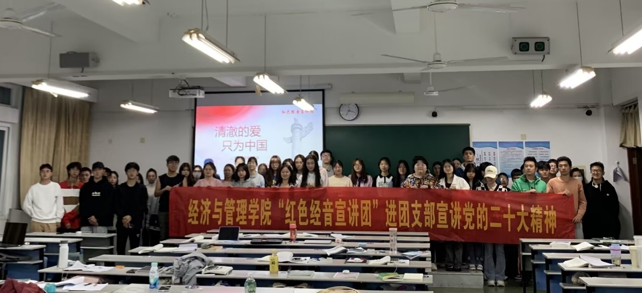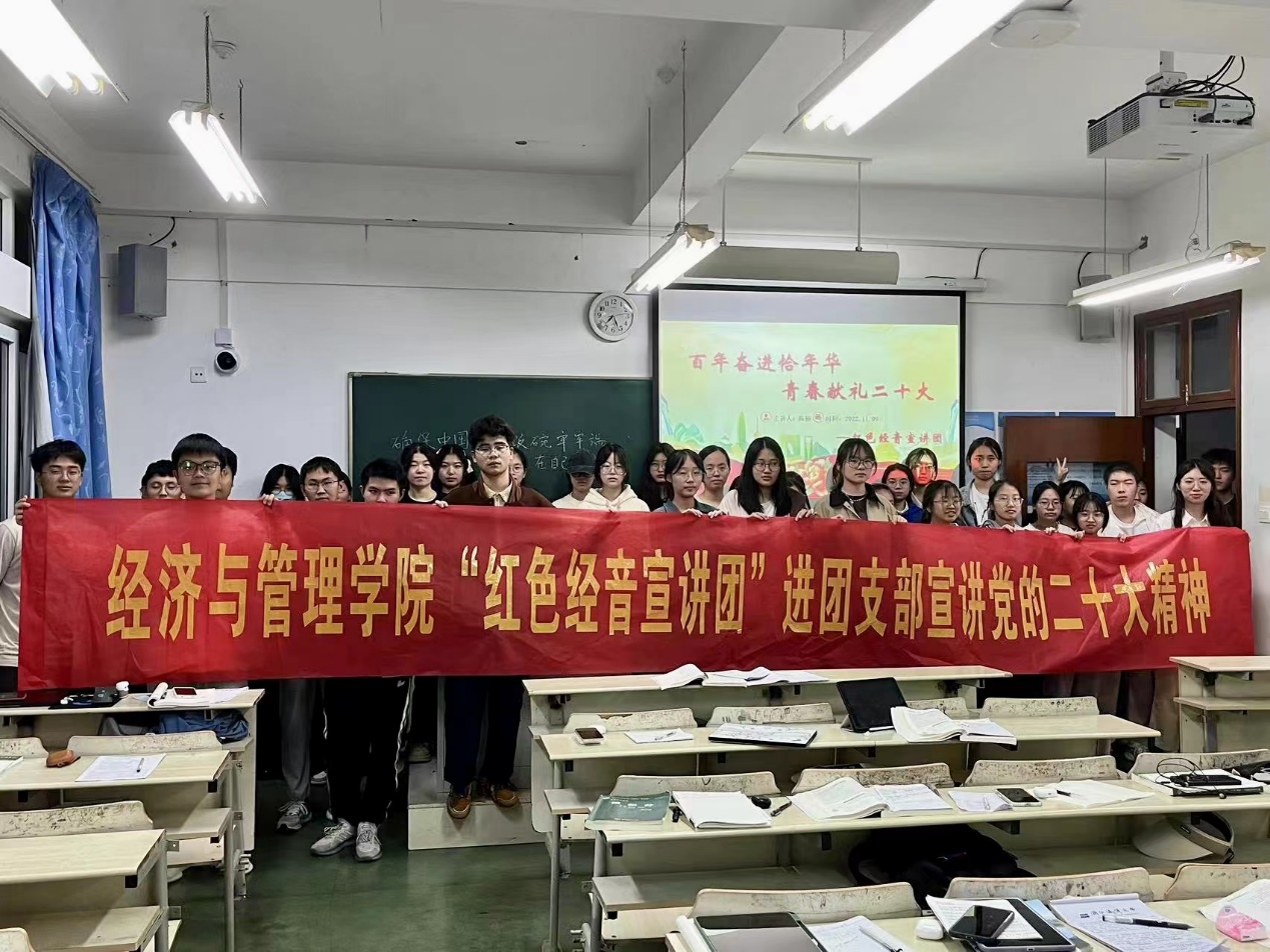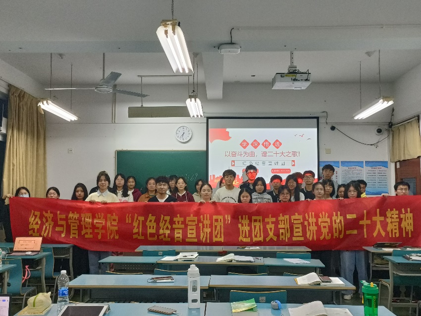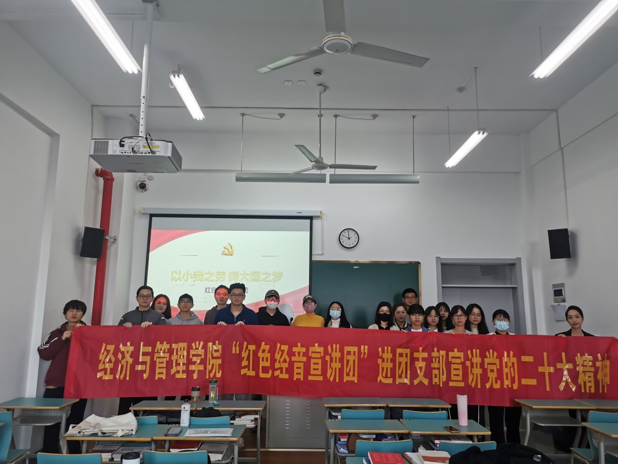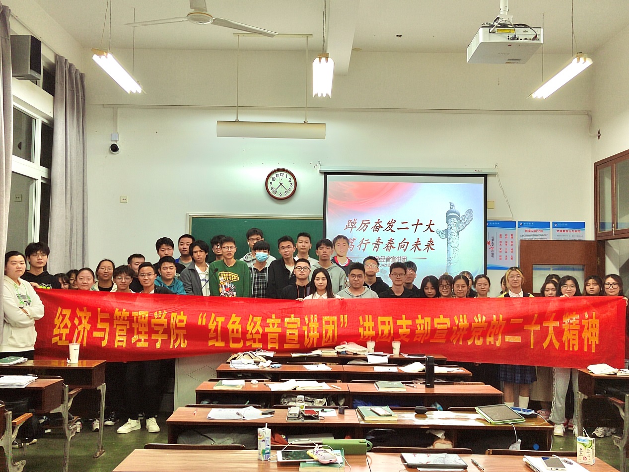 为深入学习宣传贯彻党的二十大精神,充分发挥黄色网站 青年在以中国式现代化全面推进中华民族伟大复兴中的先锋力量。黄色网站 “红色经音宣讲团”充分发挥青年宣讲作为党的好声音“传声筒”和“扬声器”的重要作用,于2022年11月深入学院各团支部广泛开展党的二十大精神“青年说”主题宣讲活动。“红色经音宣讲团”成员在学院党委领导和团委指导下,认真组织、积极备课、潜心打磨,认真做好党的二十大精神的“青年化”阐释—讲“青年话”、有“青年味”、入“青年心”,让经管青年真正成为讲的“先锋队”,学的“主力军”,听的“主心骨”,进而让党的二十大精神既凸显“红色党味”,又体现“宣讲趣味”,更符合“青年口味”。