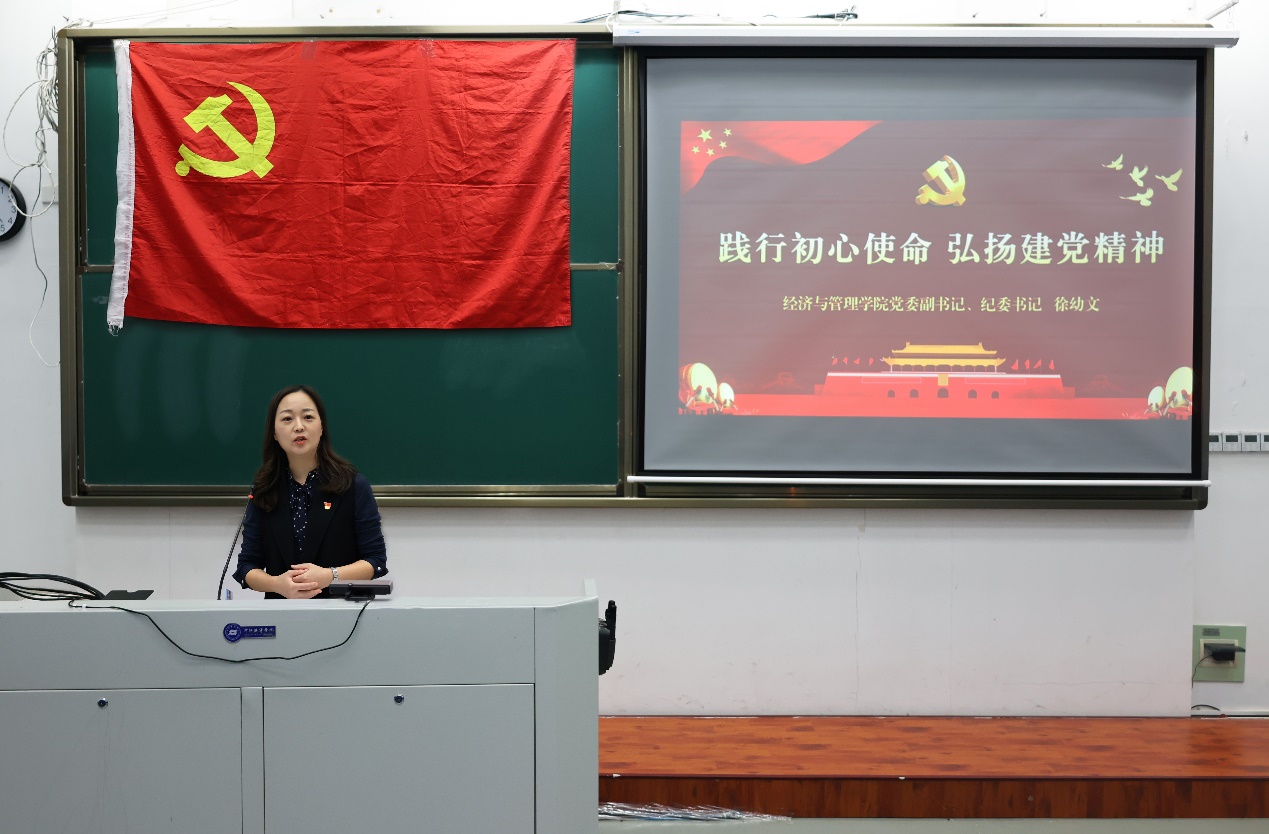 徐幼文书记以《践行初心使命,弘扬建党精神》为主题,向第二十五期党训班全体学员分享了一堂精彩的专题党课。徐书记代表学院党委向本期党训班129名顺利结业的学员们表示热烈的祝贺。希望全体入党积极分子在结业后,能继续把实现中华民族伟大复兴的中国梦作为毕生追求,胸怀“国之大者”,坚定与新时代同心同向的理想信念,以党的二十大精神为引领,在新征程中施展抱负、建功立业。为此,徐书记向第二十五期入党积极分子培训班全体学员提出了三点期望:第一,对党忠诚,勤学深思;第二,用心做事,用心待人;第三,不忘初心,继续前进。全体学员纷纷表示,站在新的历史起点,踏上新的伟大征程,要努力用青春和汗水在新征程上书写光荣与梦想,为成为一名合格的共产党员而不懈奋斗。