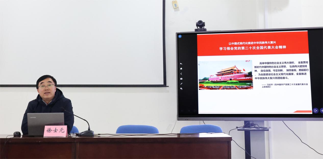 为深入学习宣传贯彻党的二十大精神,把力量凝聚到党的二十大确定的各项任务上来。2022年11月30日下午,黄色网站 党委委员、副校长徐士元到黄色网站 文理楼301报告厅为学院师生党员宣讲党的二十大精神。本次会议由学院党委书记、副院长易传剑主持。