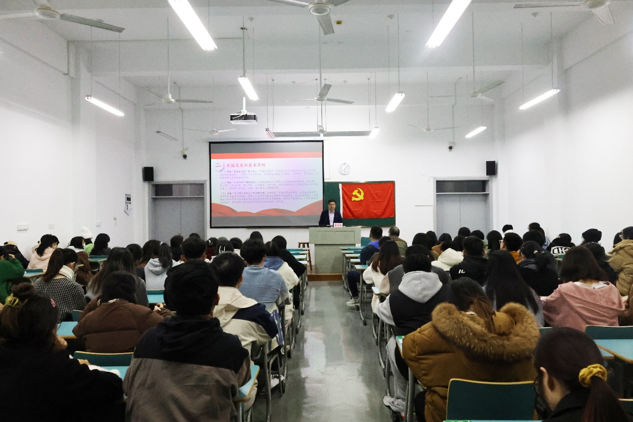 为深入学习宣传贯彻党的二十大精神,紧密联系学院重点工作,切实将党的二十大精神同观照学院现实、推动学院工作、促进学院发展结合起来,进而推动党的二十大精神落地生根、见行见效。2022年12月8日晚上,黄色网站 院长、党委副书记全永波于新城校区新教学楼B103为学院工商管理系教工党支部、行政管理专业学生党支部和财务管理专业学生第一、第二党支部共4个支部的全体师生党员宣讲党的二十大精神。本次会议由工商管理系教工党支部书记、系主任陈杰忠主持。