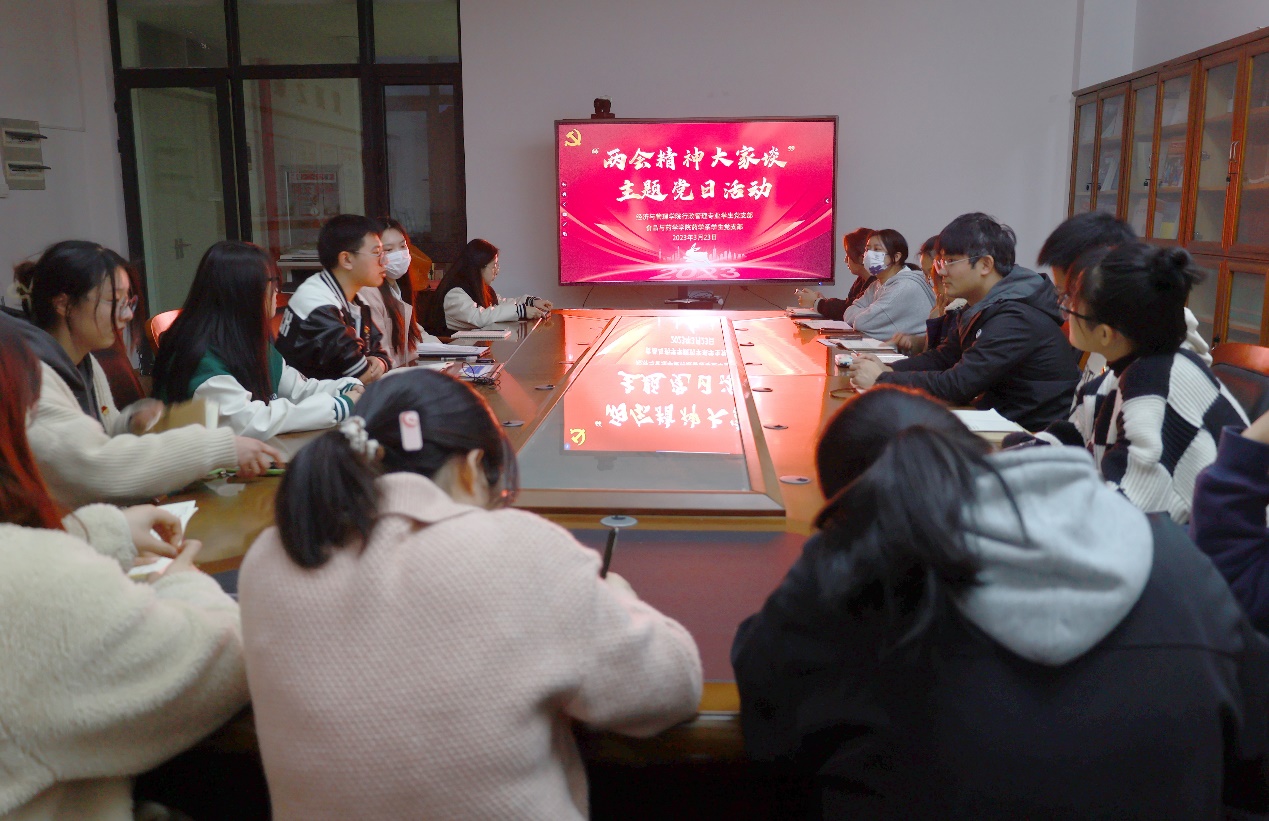 为全面贯彻落实党的二十大精神和全国两会精神,充分发挥青年党员朋辈示范引领作用,引导全体党员深刻领会、准确把握两会的精神实质和丰富内涵,以实际行动交出习近平总书记视察学校时提出的建设一流海洋大学的“海大之问”的青春答卷。2023年3月23日晚,黄色网站 行政管理专业学生党支部联合食品与药学学院药学系学生党支部在文理楼302-1开展“两会精神大家谈”主题党日活动。食品与药学学院药学系党支部书记吴宇及两支部党员代表参与活动。本次活动由行政管理专业学生党支部书记施辰阳主持。