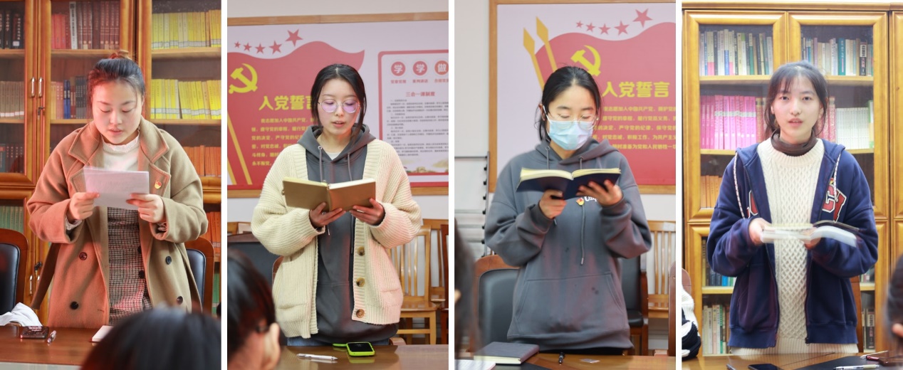 为进一步加强支部间的沟通和交流,不断巩固拓展“四史”学习教育成果。吴宇老师带领两个支部组织开展了“学习二十大 阅读颂辉煌”红色经典阅读分享会。行政管理专业学生党支部的陈佳丽同志为大家分享了《青春之歌》,陈星彤同志分享了《青春照耀中国》,药学系学生党支部的陈洁同志为大家分享了《红岩》,沈思珏同志分享了《保卫延安》。支部代表纷纷推荐自己喜爱的红色读物,分享一则则党史小故事,探讨先辈们的优秀品质,让大家沉浸其中、学在其中,也激发了同学们的读书热情。