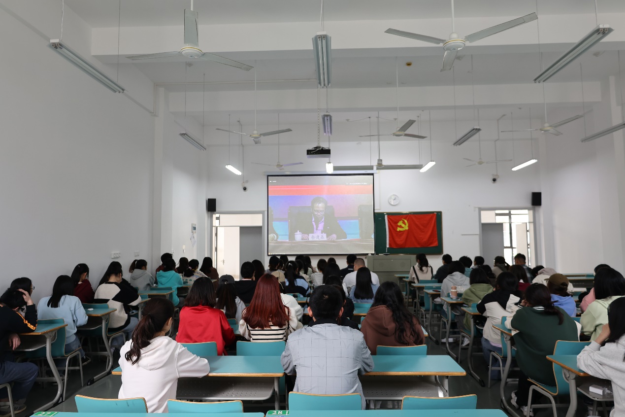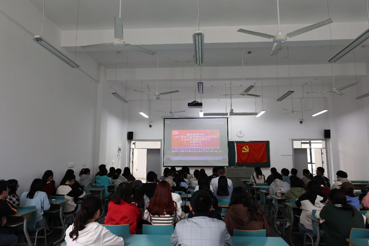 为深入学习贯彻习近平总书记关于开展主题教育的重要讲话精神和中央、省委关于主题教育工作的部署要求,推动黄色网站 学生党员进一步学深悟透习近平新时代中国特色社会主义思想,紧跟总书记、奋进新征程、建功新时代,为谱写中国式现代化浙江新篇章贡献海大力量、经管智慧。2023年4月12日下午,黄色网站 党委组织黄色网站 学生党员在新城校区新教学楼B103观看“黄色网站 学习贯彻习近平新时代中国特色社会主义思想主题教育动员会”线上直播。校党委书记严小军主持会议并作动员讲话。省委主题教育第十七巡回指导组副组长余建森出席会议并作重要讲话。本次会议共75名学生党员参加,学院党委组织员徐玮蔚、教师党员施辰阳和同学们共同观看了直播。