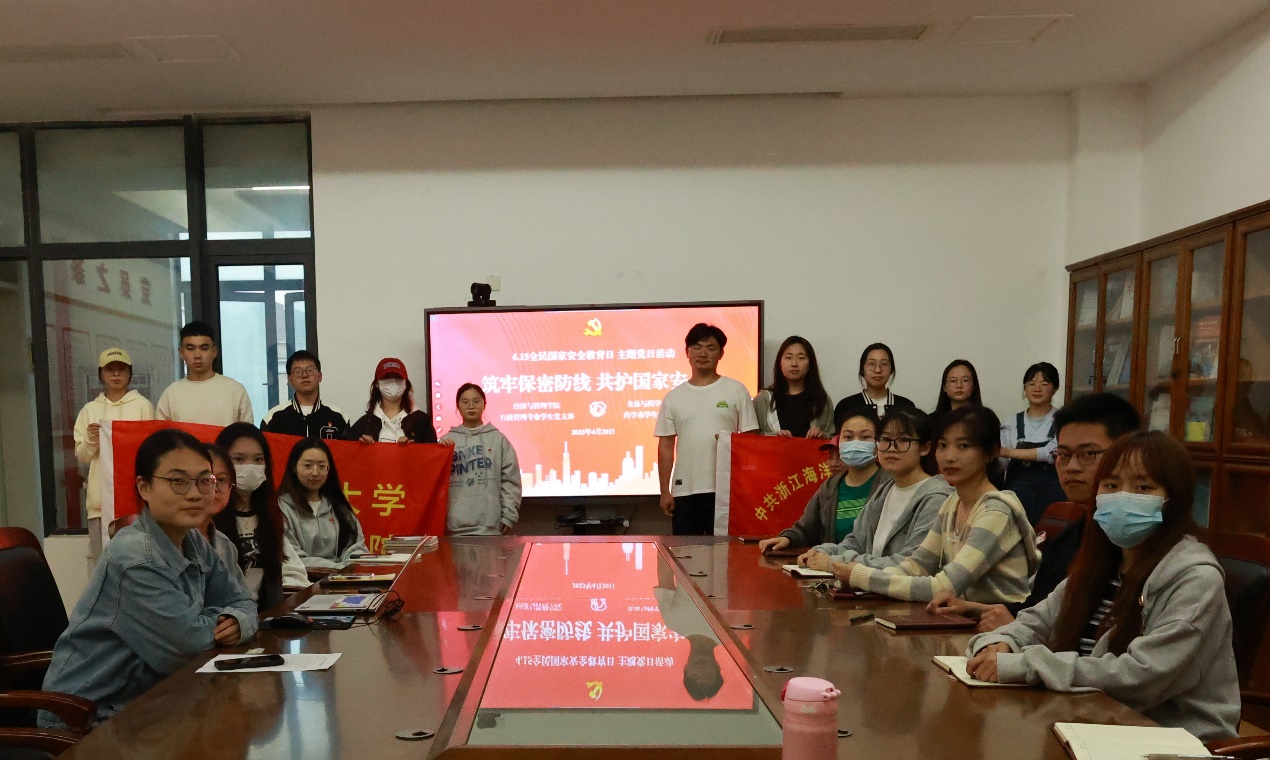 2023年4月15日是我国第八个全民国家安全教育日。为全面贯彻落实习近平新时代中国特色社会主义思想和总体国家安全观,以主题教育为契机,筑牢学生党员国家安全防线,扎实做好新形势下保密工作。2023年4月19日晚上,黄色网站 行政管理专业学生党支部联合食品与药学学院药学系学生党支部在新城校区文理楼302-1开展“筑牢保密防线,共护国家安全”主题党日活动暨学习贯彻习近平新时代中国特色社会主义思想主题教育。药学系学生党支部书记吴宇及两支部党员代表参与活动。本次活动由行政管理专业学生党支部书记施辰阳主持。