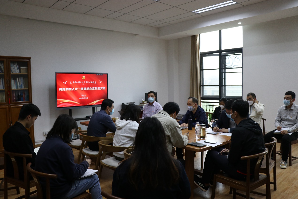 徐士元副校长指出,深入学习贯彻党的二十大精神,需要牢牢把握教育、科技、人才之间的关系,需要深刻理解习近平总书记提出的“教育、科技、人才是全面建设社会主义现代化国家的基础性、战略性支撑,必须坚持科技是第一生产力、人才是第一资源、创新是第一动力”的观点。徐副校长还结合习近平总书记、教育部、浙江省委关于教育、科技、人才的系列重要论述展开讲解。