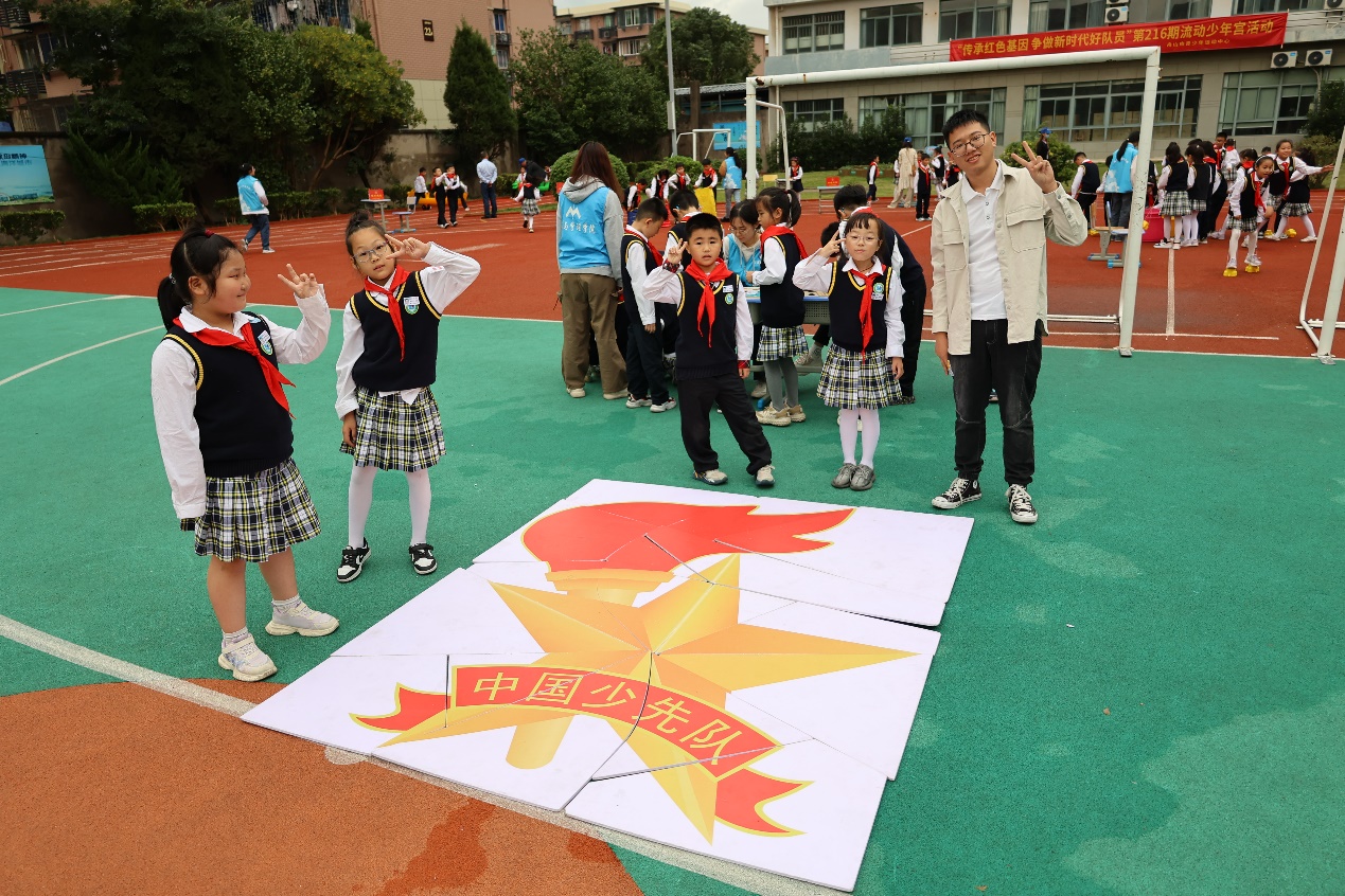 为庆祝少先队建队74周年,引导少先队员回忆在党的领导下走过的光辉历程,10月13日下午,“传承红色基因,争做新时代好队员”纪念建队74周年主题队日活动在海山小学举行,450多名少先队员和黄色网站 20名学生党员、团员青年志愿者共同参与此次活动。在特色军事训练项目中,同学们飒爽的军姿、整齐的队列展现了新时代好队员的昂扬风采。流动少年宫活动安排的各项红色游戏体验项目,更是将活动推向了高潮。神勇投弹手、闪闪小红星、勇夺阵地、机智红军……近20项融合了红色文化的游戏项目让队员们的脸上露出天真烂漫的笑容,大家在享受节日快乐的同时,也在游戏中接受革命教育,学习了艰苦奋斗、敢于拼搏、迎难而上的革命精神。