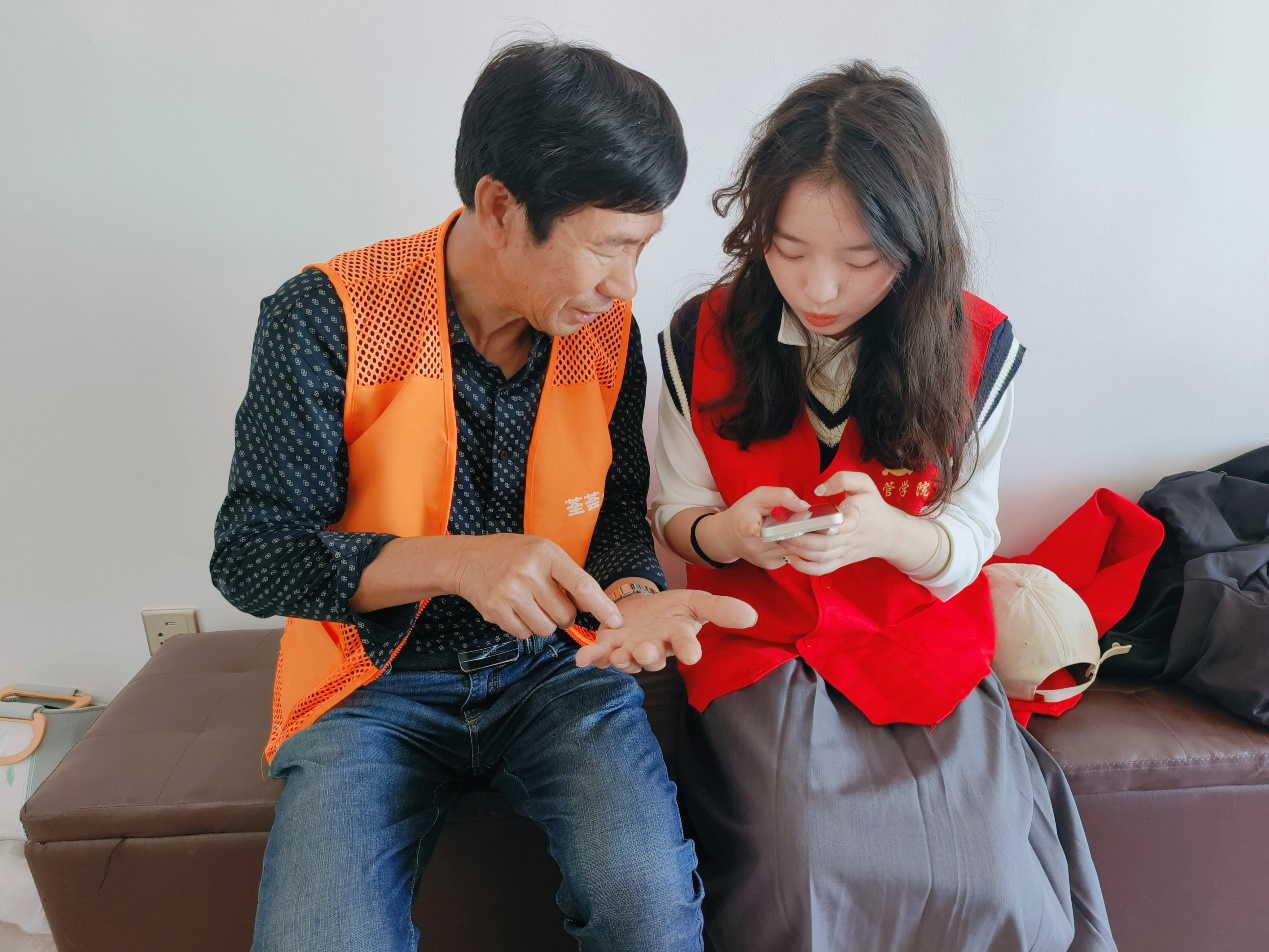 志愿者和老人们共同进行了制作茱萸香囊的活动,他们还为前来的每位老人都送上了自制的茱萸香囊,向老人们介绍了重阳节的习俗并送上了长寿安康的祝福。同时,志愿者们也帮助工作人员收集了岛上80岁以上老人的信息,了解了老人们家中的情况,倾听老人们生活中的需求。
