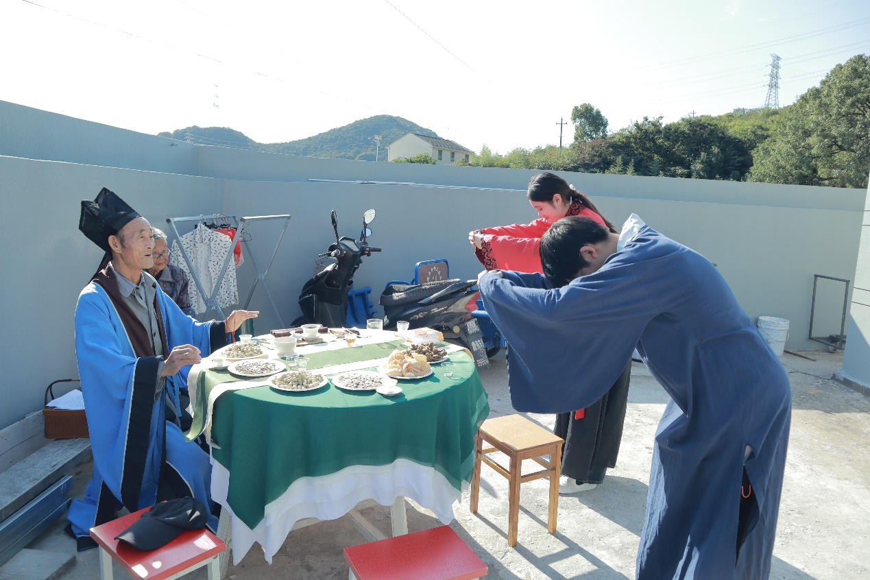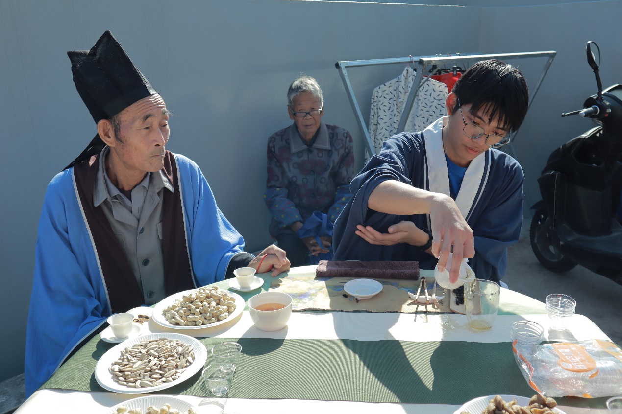 经管志愿者与老人们一同学习了问候礼仪和茶道、香道等相关知识,了解了不同辈分之间的行礼方式和品茶时的注意事项。他们还与老人相互行“揖礼”,表达了对长辈的尊重和敬爱,向老人们传播了中华民族优秀传统文化。