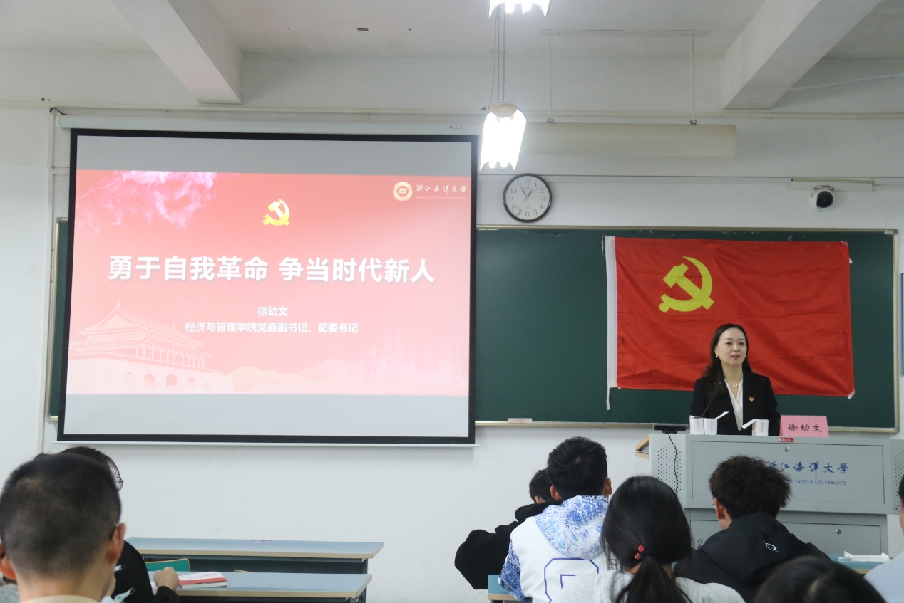 第二十七期入党积极分子培训班开班仪式在全体师生齐唱国际歌中落下帷幕。随后,徐幼文副书记以《勇于自我革命,争当时代新人》为题,为全体入党积极分子开展党训班第一课。徐书记从历史周期率引出自我革命这一话题,指出自我革命是马克思主义政党的内生特质,并深入分析了中国共产党坚持自我革命的必要性。接着,她回顾了百年党史中最具历史意义的六次自我革命,让同学们认识到全面从严治党永远在路上,党的自我革命永远在路上。最后,徐书记呼吁同学们也都能成为勇于自我革命的时代新人,并向同学们提出三点要求:第一,要坚定理想信念,站稳政治立场;第二,要敢于直面问题,勇于担当尽责;第三,要善于努力拼搏,努力增长才干。