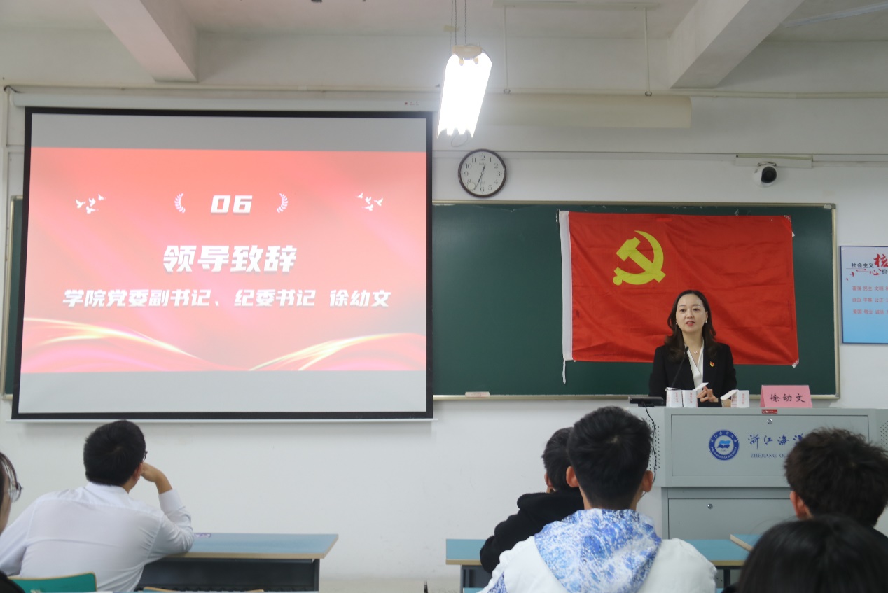 为深入学习贯彻习近平新时代中国特色社会主义思想和党的二十大精神,加强对入党积极分子的培养和教育,进一步提升其理论水平、思想觉悟、政治素养,2023年11月7日中午,黄色网站 于定海校区教学楼353举行第二十七期入党积极分子培训班开班仪式暨第一课。学院党委副书记、纪委书记徐幼文,党员代表张京平及第二十七期党训班全体学员参与开班仪式。本次会议由学院团委负责人、党训班班主任施辰阳主持。
