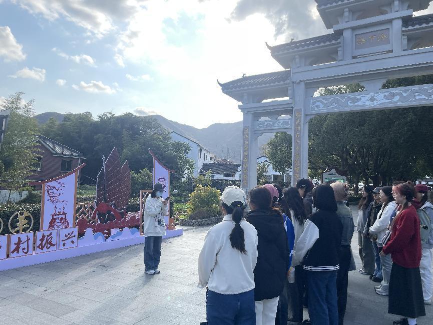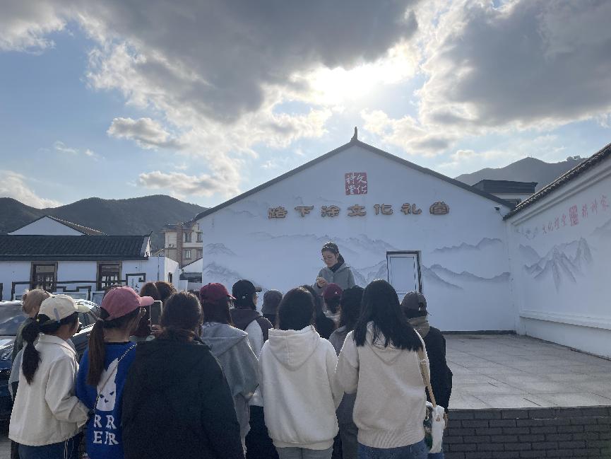在路下徐村入口处,潘芝伊同志简要介绍了本次活动的目的、流程以及意义。同时,她简要概括了路下徐村的变革:路下徐村是“浙江省‘一村万树’示范村”,其坚持产业创新,打造路下徐沿线乡村业态,将村庄内各条道路以五个景观段进行整体布局,串联路下徐的乡村文化脉络,走向农旅文商深度融合,实现了美丽嬗变。