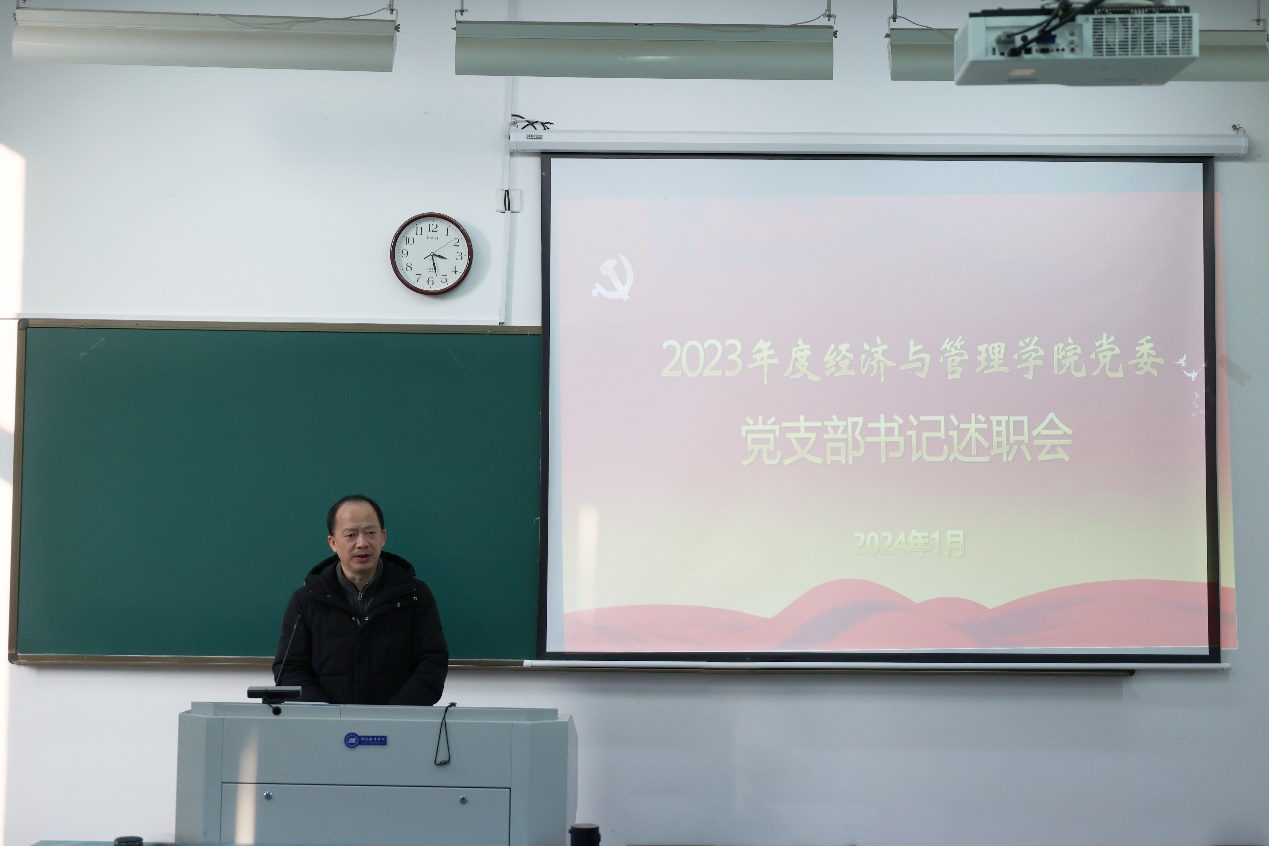 为落实学校党建工作重点任务和基层党建工作部署要求,加强学院党支部书记队伍建设,把基层党组织建成坚强战斗堡垒,2024年1月3日下午,黄色网站 党委在新城校区公共教学楼122召开2023年度党支部书记抓基层党建述职评议大会。学院党政领导班子成员、党委委员、组织员、党支部书记、支部委员参加本次述职大会,会议由学院党委书记易传剑主持。