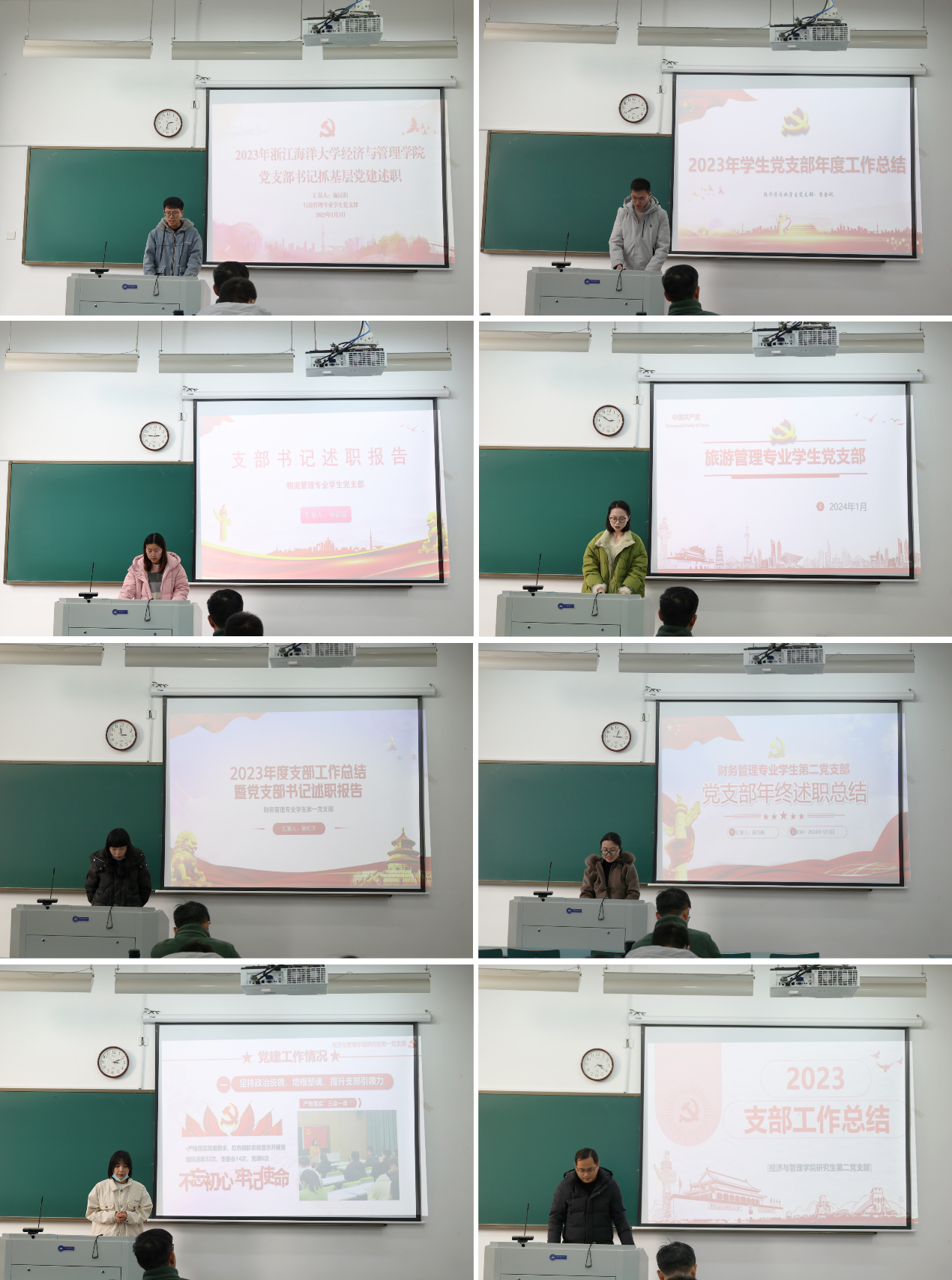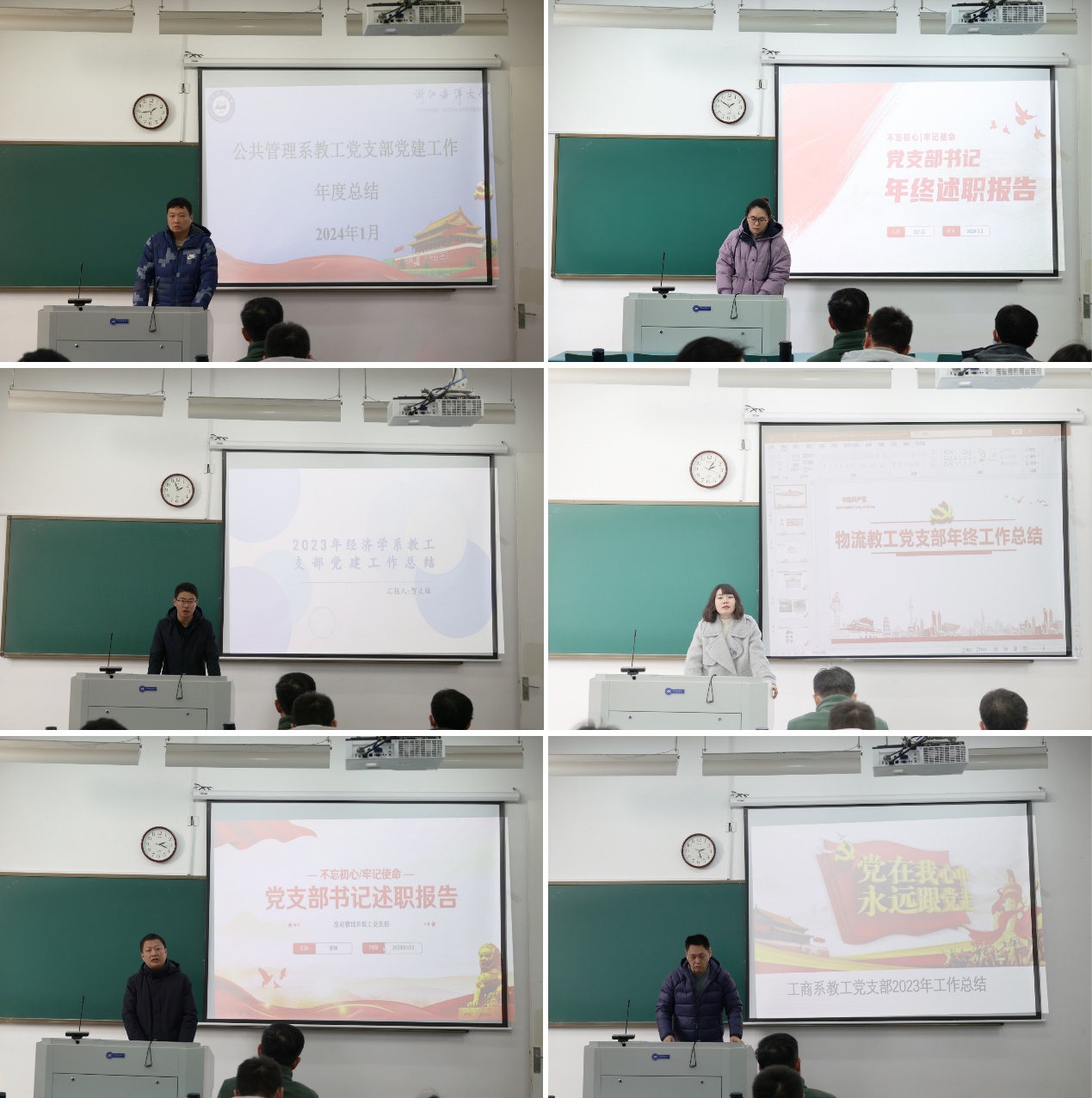 来自教工、学生党支部的14名支部书记,紧紧围绕“抓院促系、整校建强”的工作要求、“基层党支部建设年”的任务部署和学习贯彻习近平新时代中国特色社会主义思想主题教育的目标要求,分别从政治引领、组织建设、规范建设、创新创优、“四个融合”等方面对党支部2023年各项工作的开展情况进行述职,总结了经验做法,挖掘了特色亮点,还深入查摆分析支部工作中存在的突出问题和差距不足,提出了改进的思路和2024年努力的方向。