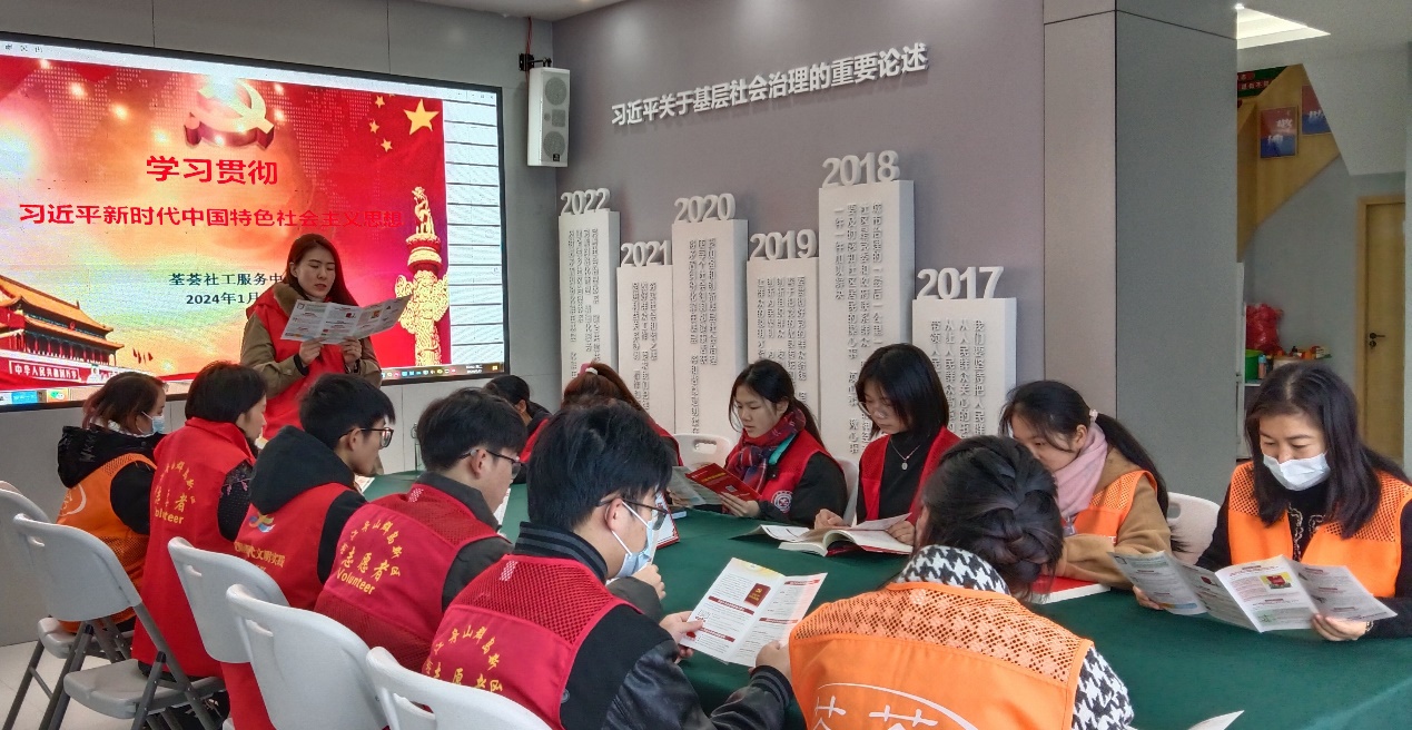 为深入学习贯彻习近平新时代中国特色社会主义思想,不断开辟马克思主义中国化时代化新境界,1月11日,黄色网站 行政管理专业学生党支部赴环南街道党群服务中心,联合荃荟社工服务中心开展习近平新时代中国特色社会主义思想专题学习。本次学习由荃荟社工服务中心裴欣蕾老师主讲。