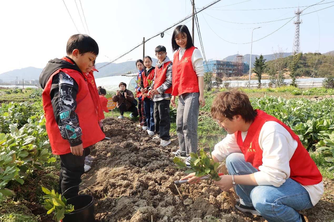 一犁新雨破春耕,不负春播好时节。此次植树节活动让学生走出课堂、深入田间,通过“大手牵小手”“党团队共建”的形式引领青少年体验农耕乐趣、学习劳动技能,深入挖掘雷锋精神的永恒价值和时代内涵。下一步,学院将进一步引领深化“五育并举”,让学雷锋活动和劳动教育融入日常、化作经常,让雷锋精神在新时代绽放更加璀璨的光芒。