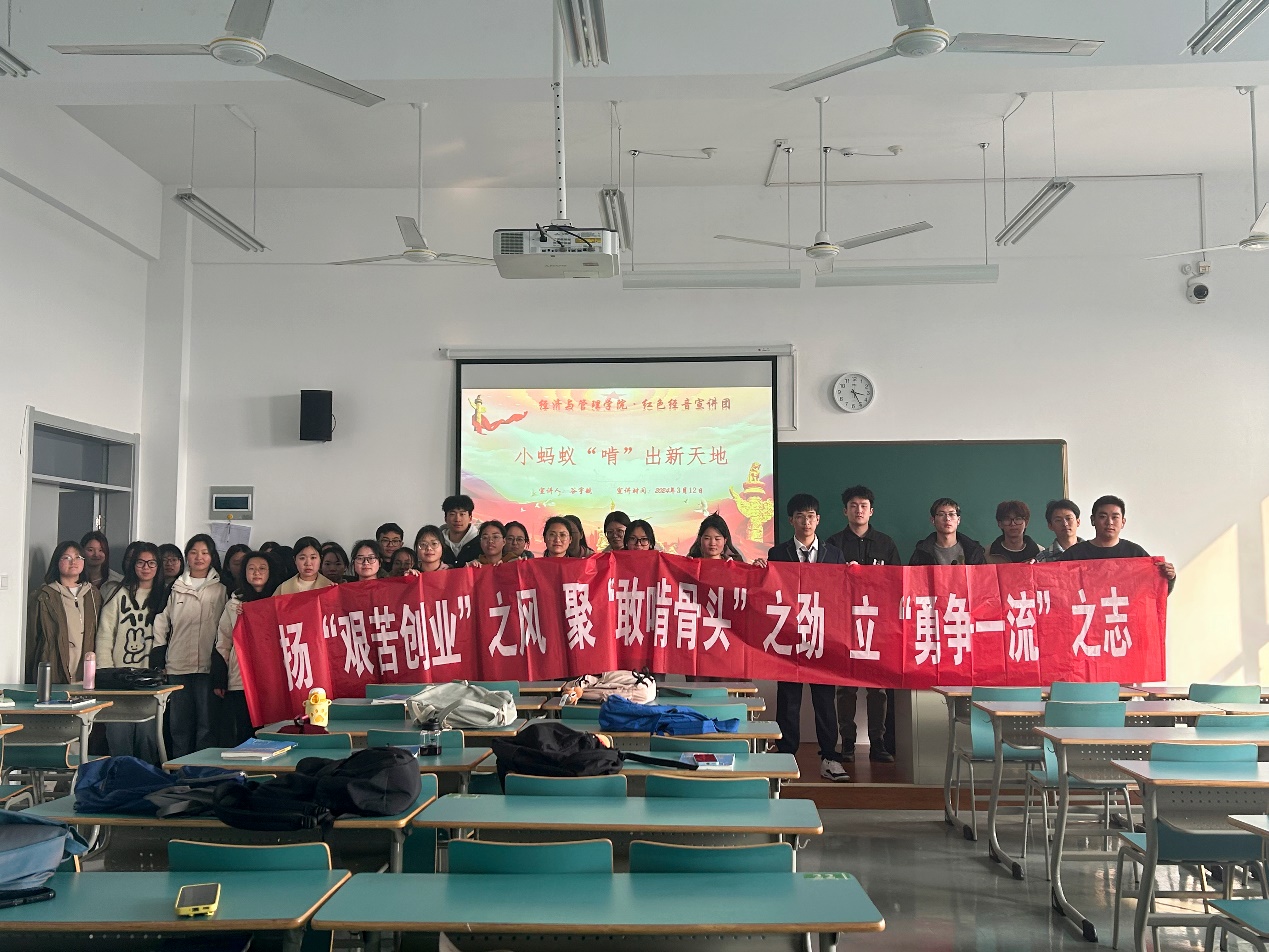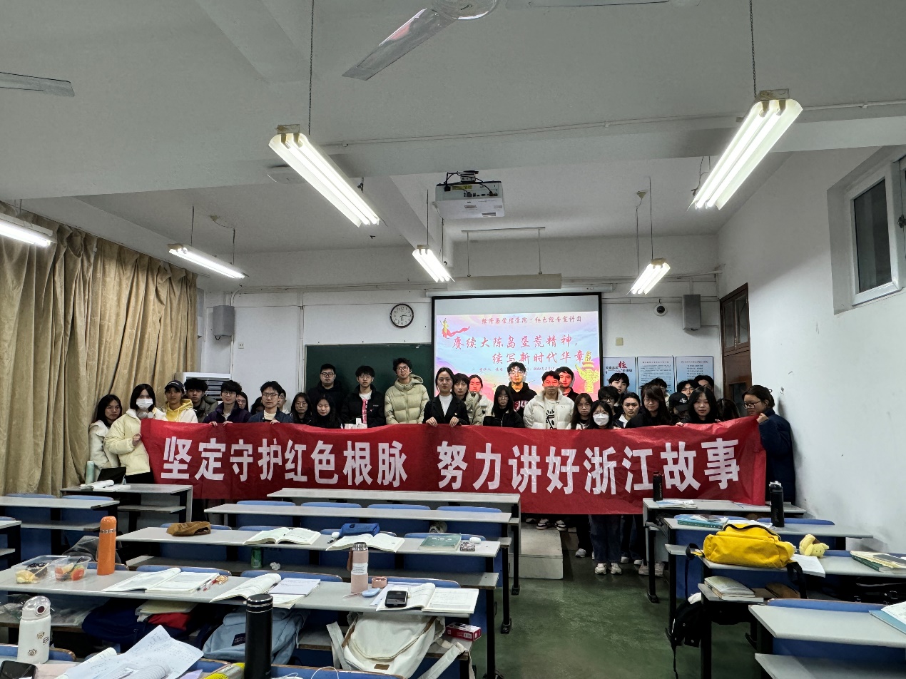 宣讲团团长谷宇航以《从“东海小蚂蚁”看海岛振兴》为题,带领Z23财务1班团支部的同学们回望了蚂蚁岛这座不足3平方公里海岛的前世今生,从经历筚路蓝缕、自力更生的生产自救,到一岛上下努力摘掉远近闻名的“癞头山”帽子,再到打造成“全国创建文明村镇工作”先进村镇……凝练出的“艰苦创业、敢啃骨头、勇争一流”的12字蚂蚁岛精神,是蚂蚁岛数代人心中的精神支柱,亦是蚂蚁岛最为生动、真实的发展写照。