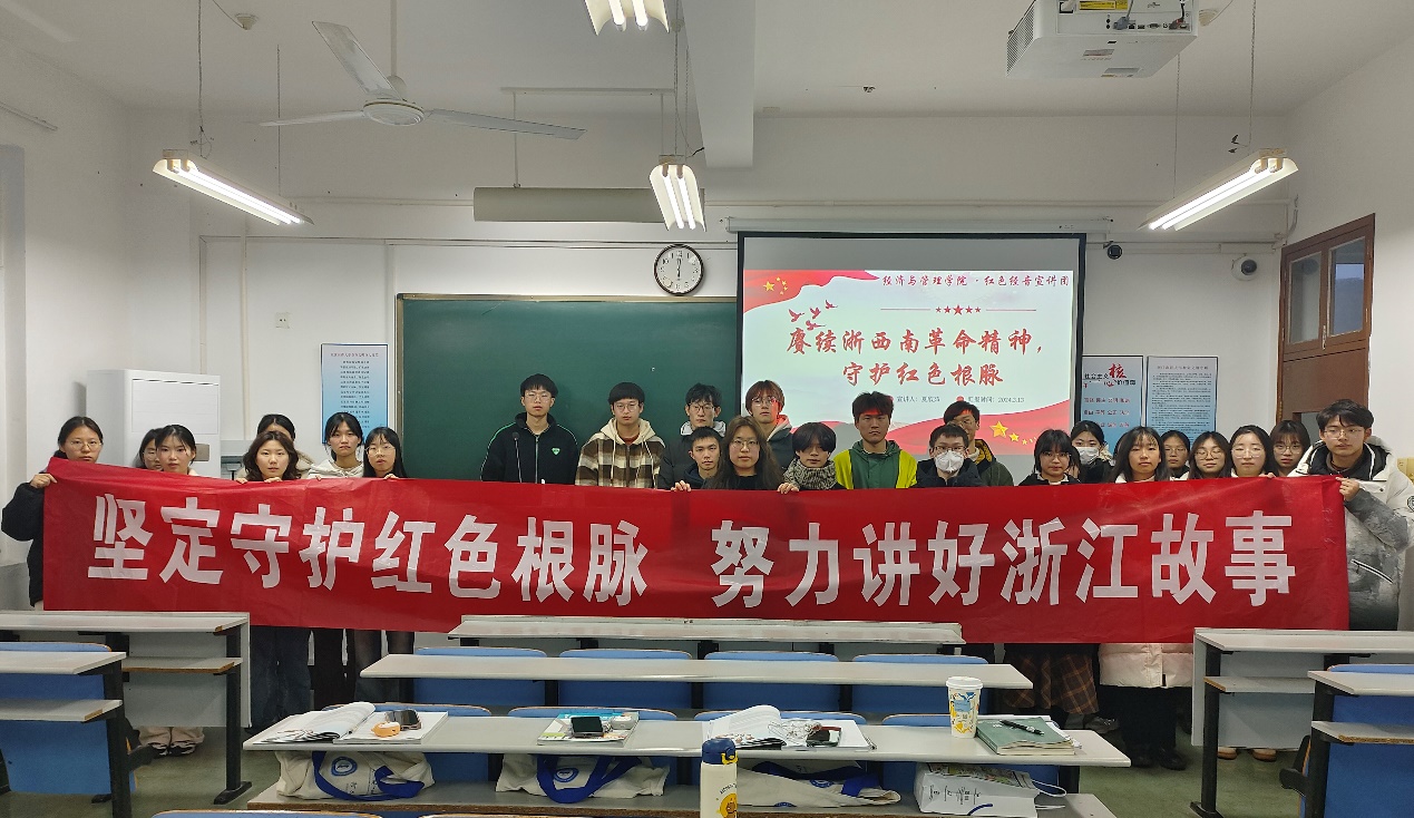 宣讲团成员夏欣茹以《赓续浙西南革命谨慎,守护红色根脉》为题,以习近平总书记在丽水调研时指出“革命遗址值得重视和挖掘”为切入点,向A23财务1班团支部同学开展了主题宣讲,她从浙西南革命精神“忠诚使命、求是挺进、植根人民”的基本内容以及历史底蕴等方面进行阐述,号召大家体味浙西南革命精神的力量,并将其融会贯通于立身处世之中。