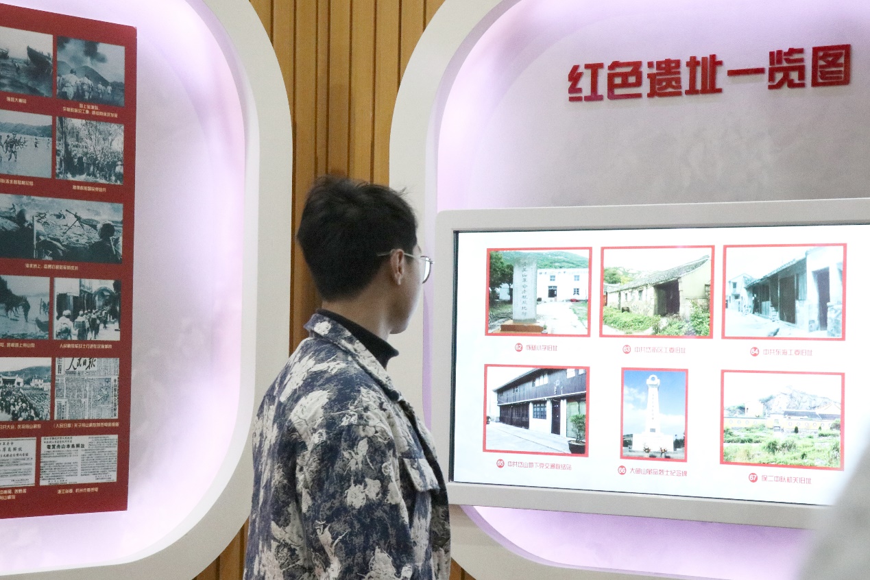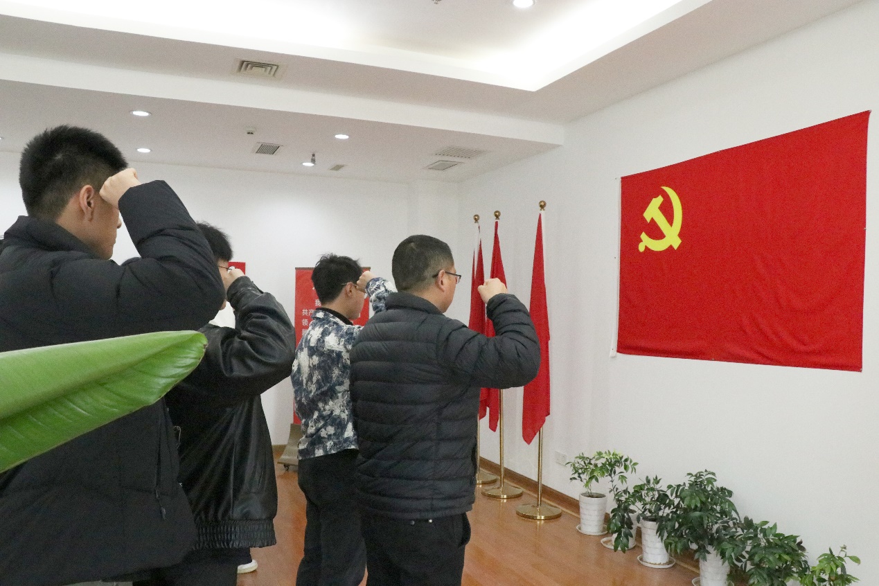 最后,全体党员同志走近舟山记忆展厅,面向鲜红的党旗,大家举起右拳,在研究生第二党支部书记杨小波老师的带领下,重温入党誓词,用铿锵恢宏的誓言表达对党坚定不移的信仰和承诺。