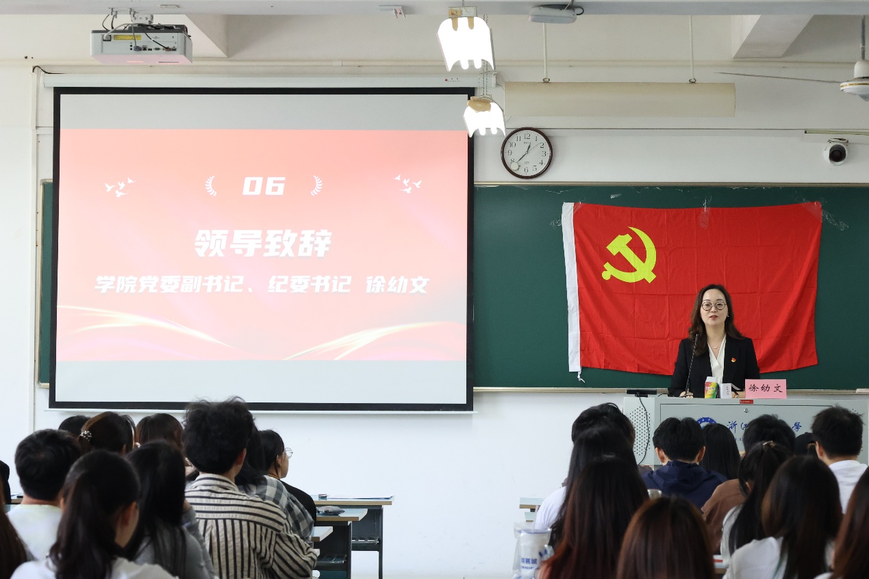 学院党委副书记、纪委书记徐幼文指出,第二十八期入党积极分子培训班的举办正逢新中国成立75周年,学校第二次党代会胜利召开之年,还是习近平总书记给学校参加《蓝色报告2003》“两课”德育社会实践活动的师生代表回信的20周年。全体学员要坚持问题导向、聚焦目标任务,确保在党训班中学有所获。对此,徐书记向本期党训班全体学员提出了三点要求:第一,要端正入党动机,在实际行动中铸牢对党忠诚。要时刻牢记党员宗旨,任何时候都与党同心同德、与人民同甘共苦;第二,要增强学习本领,在学深悟透中汲取实干力量。要带着信仰学、带着感情学、带着问题学,努力让学习进入思想、进入工作、解决问题;第三,要坚持知行合一,在躬行实践中创造精彩人生。要坚持着眼于用,落脚于行,以坚定的执行力、强大的行动力,推动新时代党的创新理论入脑入心、走深走实。