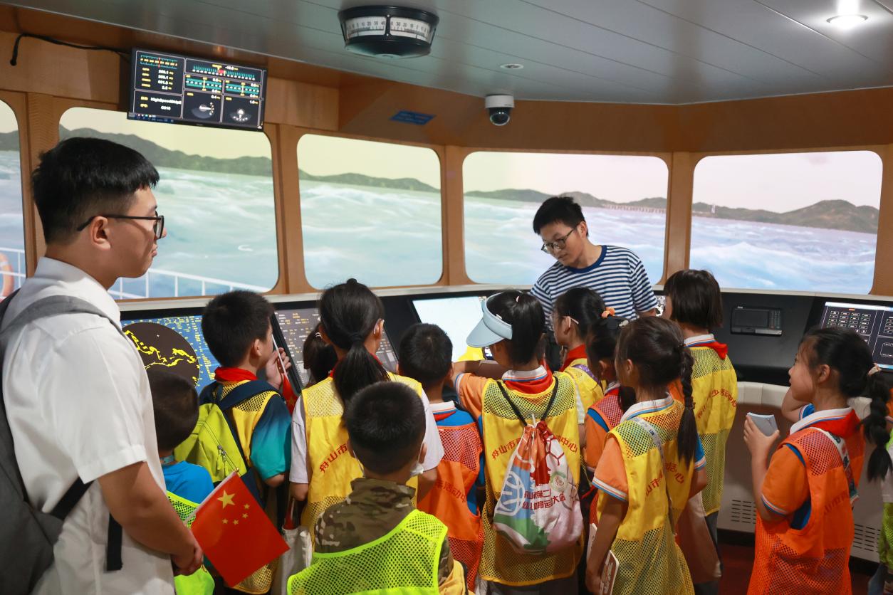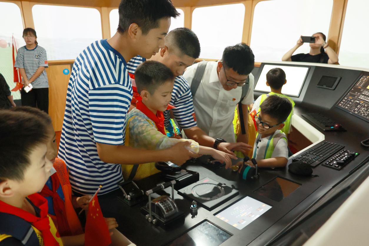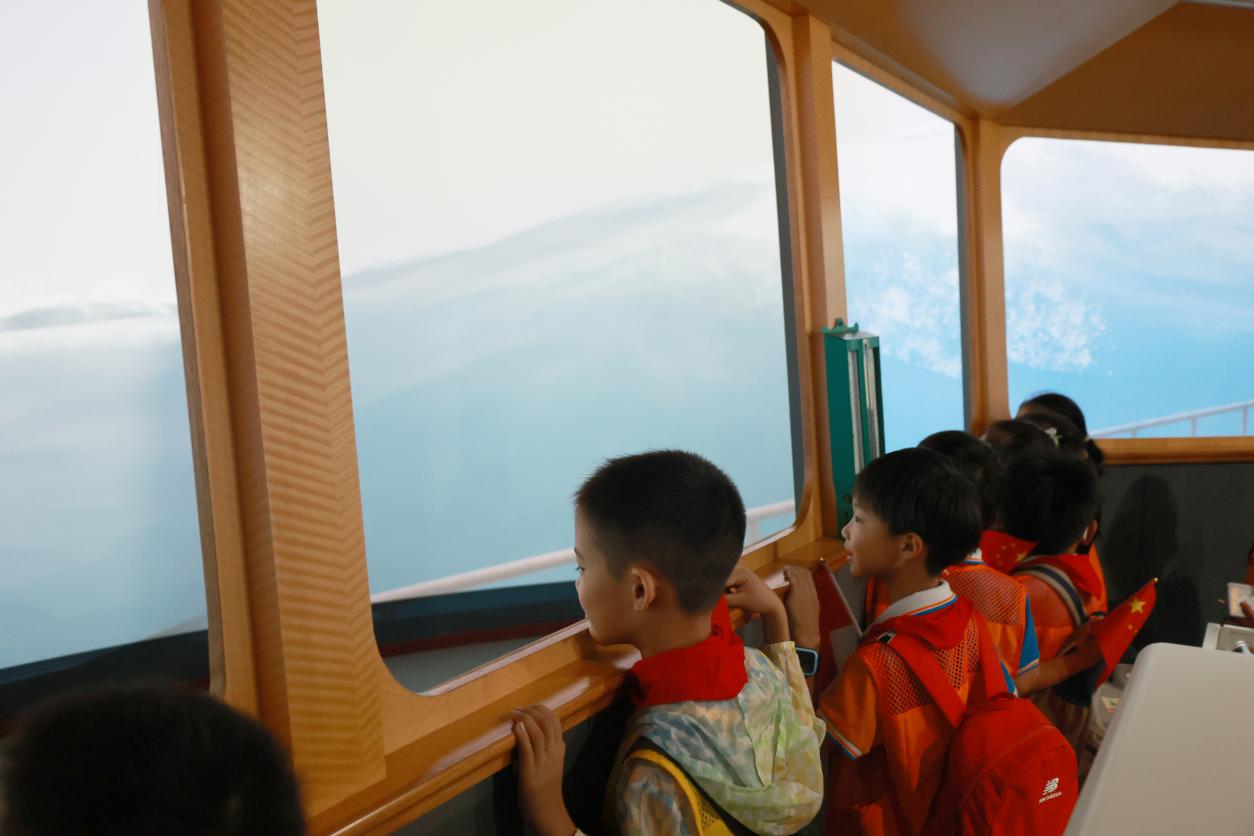 大小朋友们步入学校大型船舶操纵模拟器实验室,广阔的海洋在屏幕上尽收眼底,各种仪器揭开神秘的蔚蓝之谜。少先队员在海大同学的带领下,握紧操纵杆,身临其境地驾驶船舶,仿佛真正穿梭于波涛汹涌的海面,感受着航海的无限魅力与挑战。