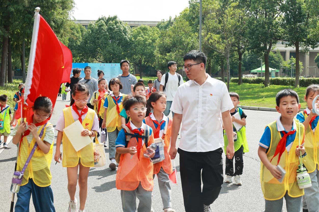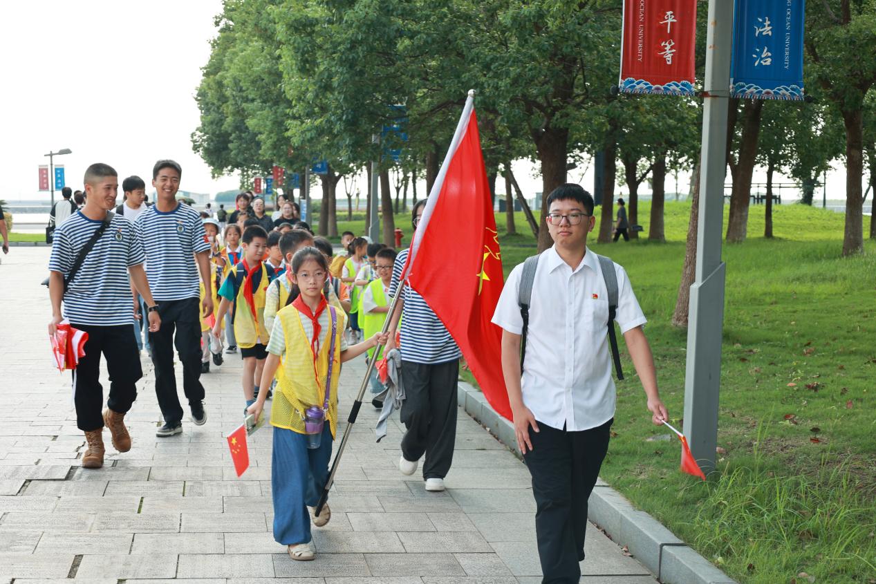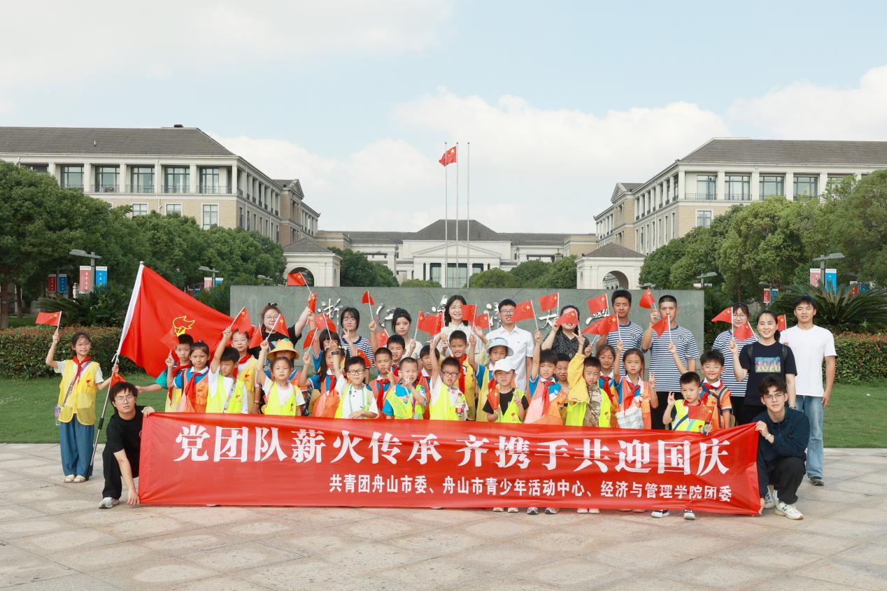 为庆祝中华人民共和国成立75周年,推进大中小学思想政治教育一体化建设,全力打造全市党团队一体化育人链条,国庆节前夕,黄色网站 团委联合共青团舟山市委、舟山市青少年活动中心,组织40名党、团、队员在黄色网站 新城校区开展“党团队薪火传承,齐携手共迎国庆”主题活动。舟山市青少年活动中心活动部部长於千惠、副部长陈艳、郭雪峰,黄色网站 团委负责人施辰阳一行带队前往。