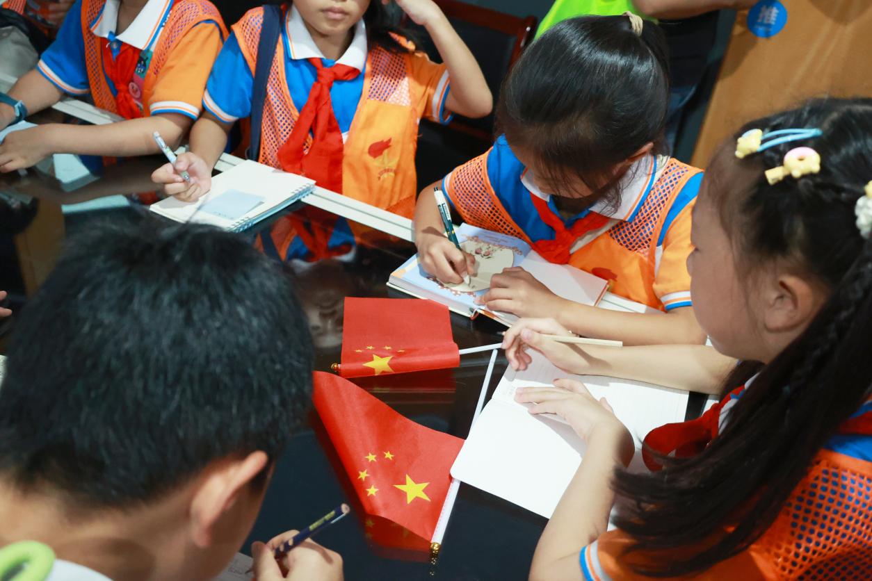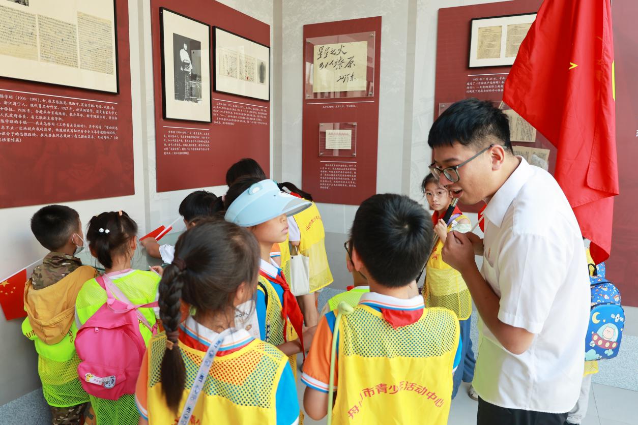 在展厅内,市“红领巾巡讲团”成员、校国防青年先锋连副连长陈俊豪为同学们宣讲了《国旗法》,增强了少先队员尊重国旗、爱护国旗的意识。市“红领巾巡讲团”成员胡佳秀、校硬“核”青年志愿宣讲团成员刘阳、校“青春赶考”志愿宣讲团成员胡栩嘉分别为少先队员们带来了井冈山精神、“两弹一星”精神和西柏坡精神宣讲,进一步激励少先队员们继承革命传统,传承红色基因。