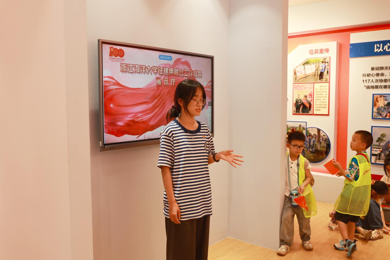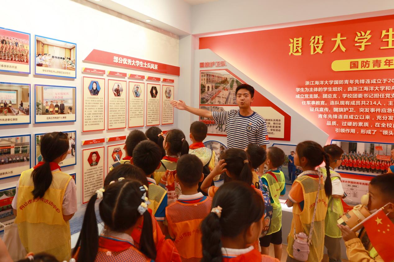在学校征建用融合工作成果展示厅,市“红领巾巡讲团”成员、校国防青年先锋连连长徐轩为师生们分享了学校征建用融合工作的探索历程,介绍了学校“蓝色领航、国防铸魂”的思政育人理念,呼吁少先队员们要从小树立爱国情怀,增强国防意识,成为肩负起建设祖国和保卫国家重任的新时代好少年。徐轩还为少先队员们展示了95-1式自动步枪的结构与操作原理,讲解了其在国防中的重要作用,激发了同学们对国防知识的兴趣。