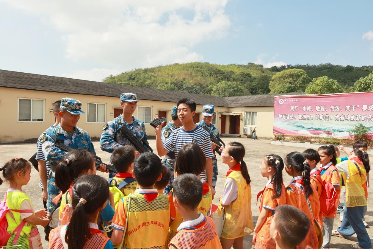 全体师生们还进行了“我和国旗合个影”活动。少先队员们昂首挺胸、精神饱满地行队礼,师生们用简单质朴的方式为祖国送上祝福,凝聚起奋进新时代的青春力量。大小朋友们还携手前往金塘岛的金塘解放史陈列馆、解放舟山金塘岛登陆点等地参观学习、聆听宣讲,感受了革命先烈为解放金塘、解放舟山而矢志奋斗、英勇牺牲的革命精神。