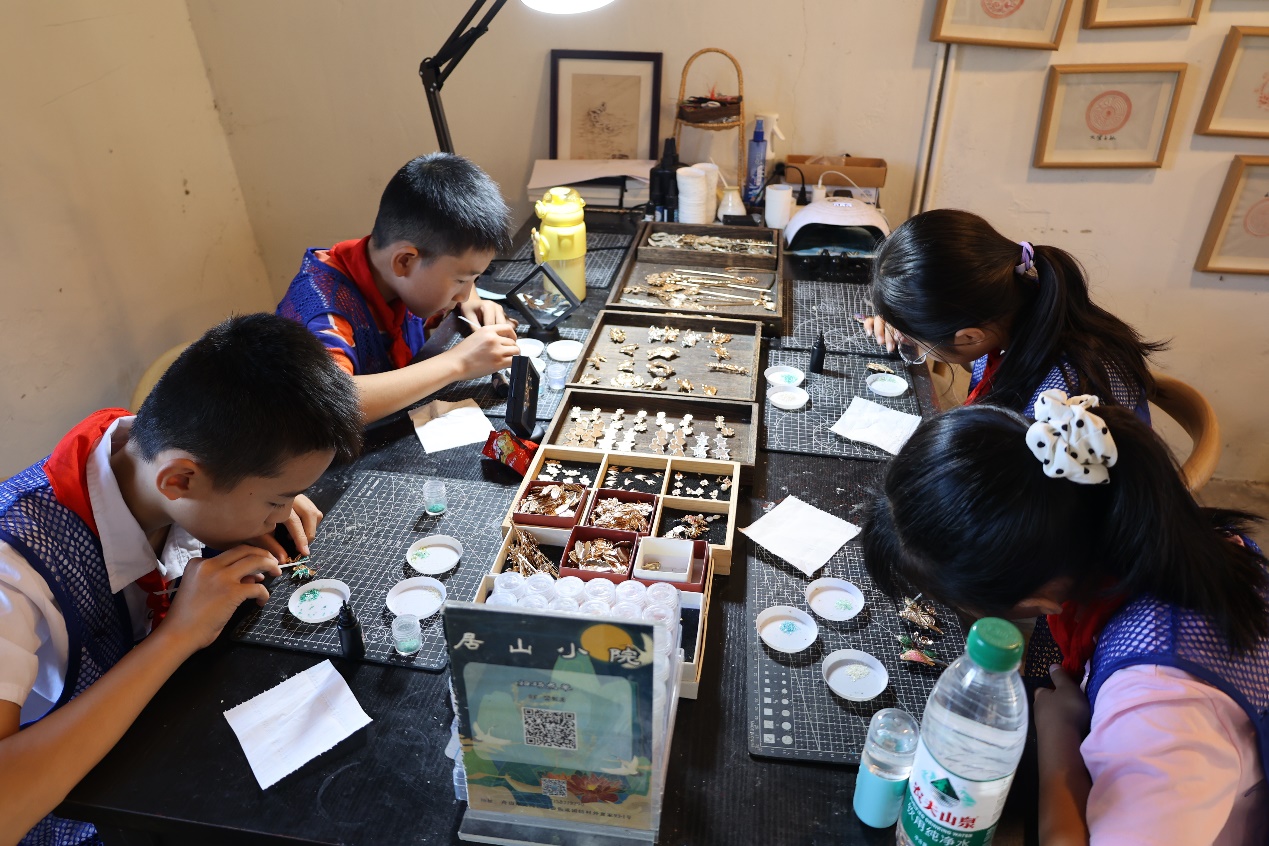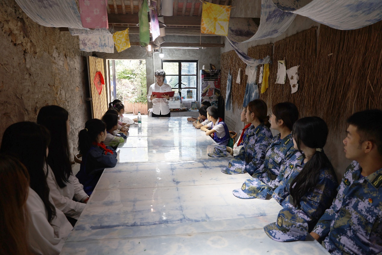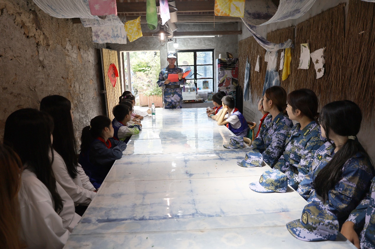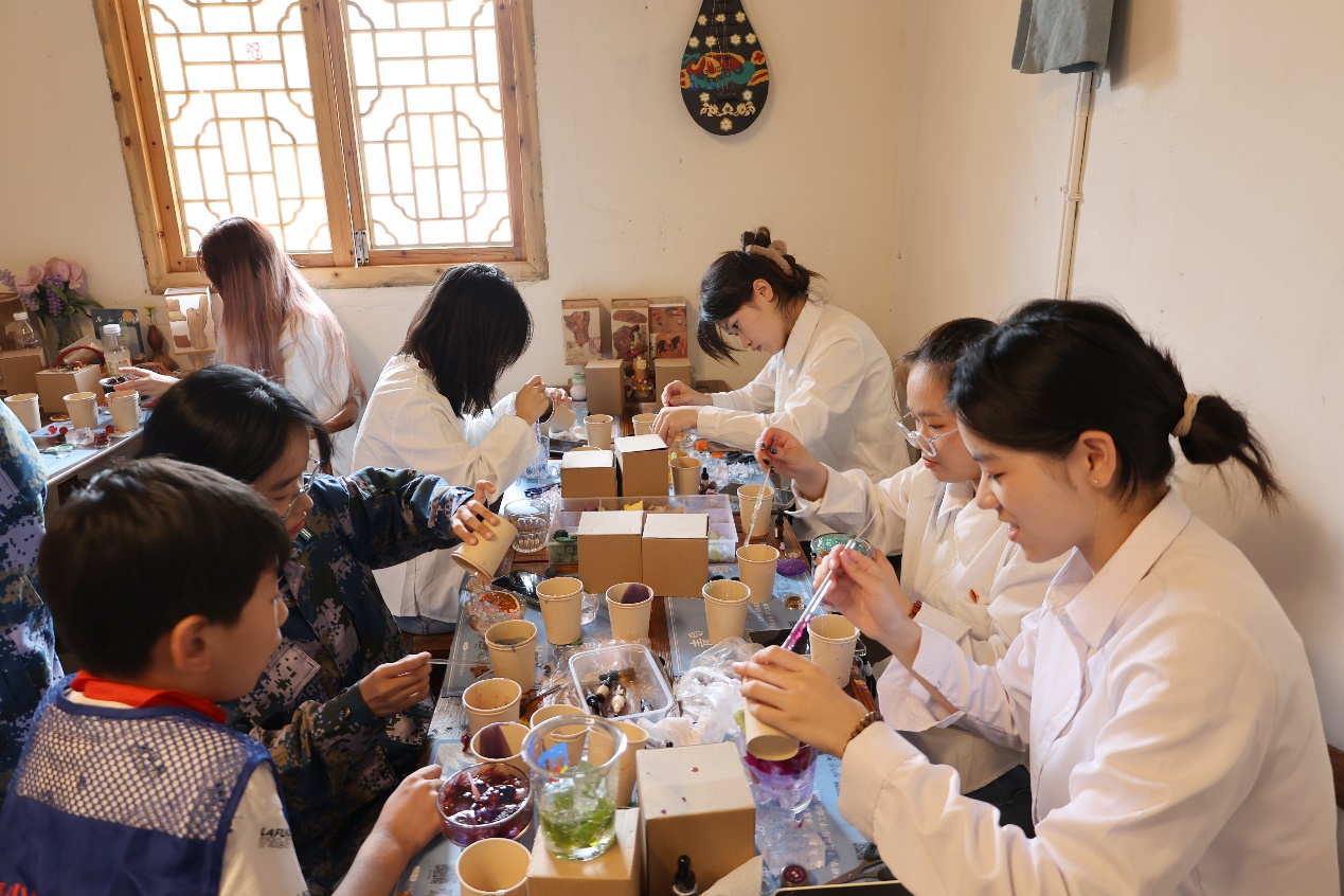 在马岙居山小院,非遗讲师团成员为党、团、队员们详细讲解了国家级非遗——蓝印花布印染技艺,省级非遗——舟山螺钿镶嵌以及串珠手作、饮料蜡烛等非遗传统技艺的历史渊源和文化内涵。他们通过现场演示和互动体验,展示了这些技艺的独特魅力和精湛工艺,强调了传承与保护非遗文化的重要性。随后,同学们通过亲身参与制作,进一步感受了非遗技艺的艺术价值,增强了以坚定的文化自信推进中国式现代化的决心。