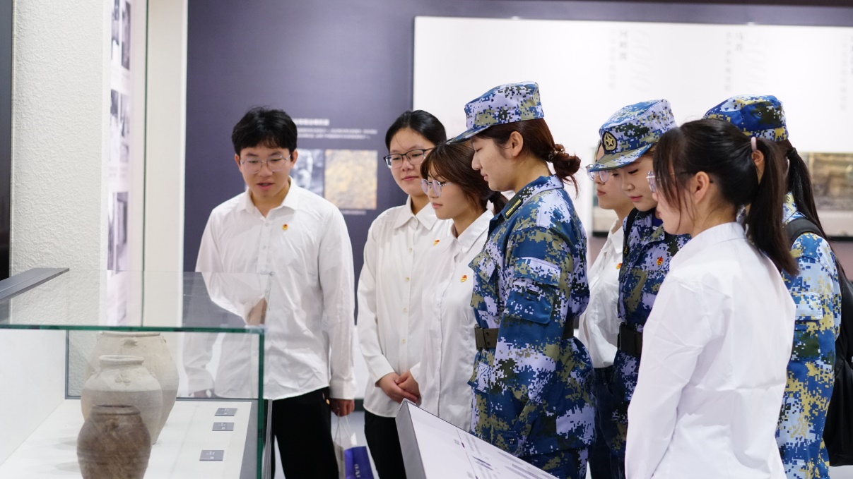 在红色教育基地马岙博物馆,同学们打开了与河姆渡文化对话的窗口,他们仔细观摩新石器时代的特大石犁、磨制精细的礼器——凿形器、天落奇石——石陨石等文物,深入学习了马岙“海岛第一村”“海盐文化”“海岛民风习俗”等历史知识,感受了舟山海岛先贤们所展现的英勇、勤劳、奋进精神,对历史年轮中深厚的海洋文化有了更为深刻的理解。