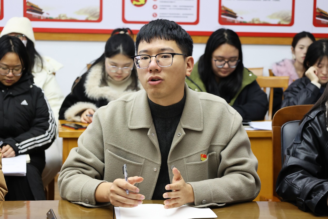 会上,行政管理专业党员代表徐辉、团员代表李荣以及旅游管理专业党员代表徐圣奥、团员代表陈伊茹、俞俊豪,结合学院实际,围绕“一站式”学生社区建设背景下,如何通过党建带团建,更好地开展思想引领、学风建设、文体活动、志愿公益等内容积极建言献策。他们结合专业特点与实践经验,介绍了在日常工作中落实党建带团建的具体做法,分享了如何通过强化党团协作促进青年全面发展的心得体会,为学院党建带团建工作提供了新思路和新方法。