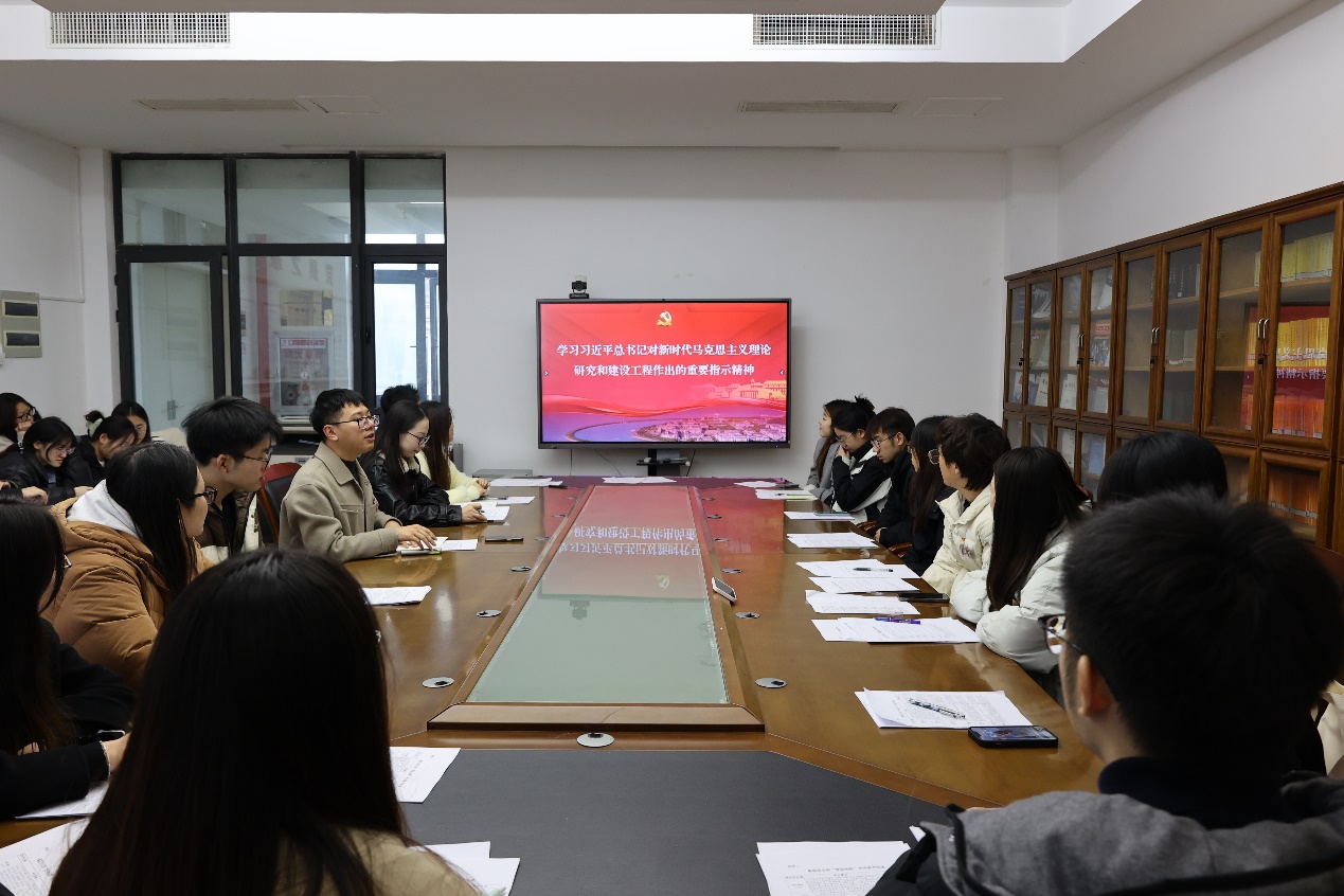 会上,全体党员和团员还集体学习了习近平总书记对新时代马克思主义理论研究和建设工程作出的重要指示精神。旅游管理专业学生党员、舟山市“新潮声”理论宣讲团成员杜唯一还以《文化自信,照亮未来》为题开展宣讲,深刻阐述了文化自信在新时代的重要意义。