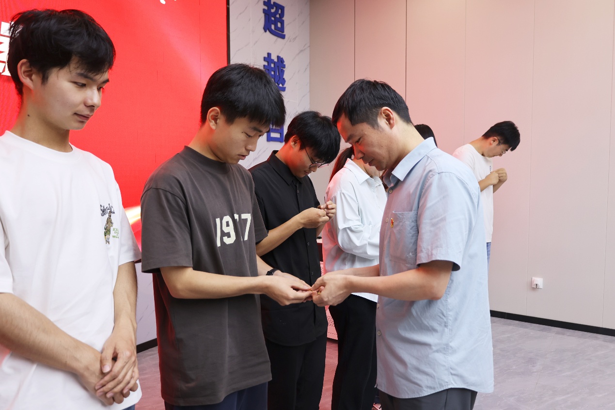 最后,方锐书记宣读了2025年上半年学院新发展的29名学生党员名单,并为全体预备党员佩戴党员徽章。方锐书记还带领全体党员进行了庄严的入党宣誓,激励大家牢记初心使命,坚定理想信念,切实发挥党员的先锋模范作用。