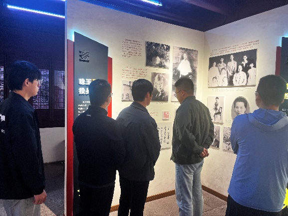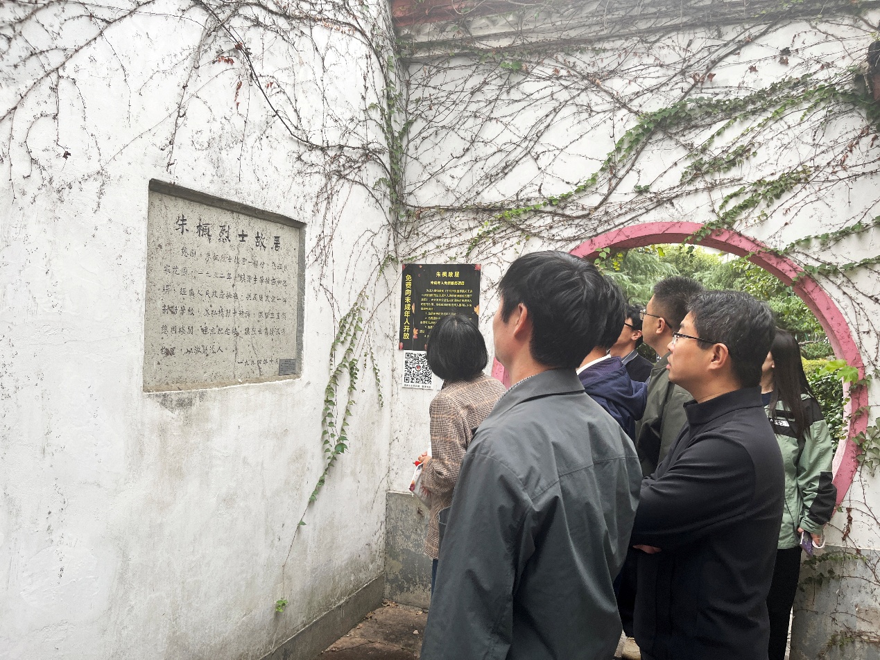 在镇海朱枫故居,教职工党员先后参观了“珠玉弥明 投身革命”“转辗迢遥 燃情激荡”“深入虎穴 传递情报”“从容就义 浩气长存”“魂归故土 流芳百世”等五个展区。泛黄的书信、珍贵的实物、亲友的题词,串联起朱枫烈士短暂却壮烈的一生。从满怀理想投身革命洪流,到辗转多地开展秘密工作,再到深入敌营传递关键情报,最后从容赴死坚守气节,每一幅画面都令人动容。