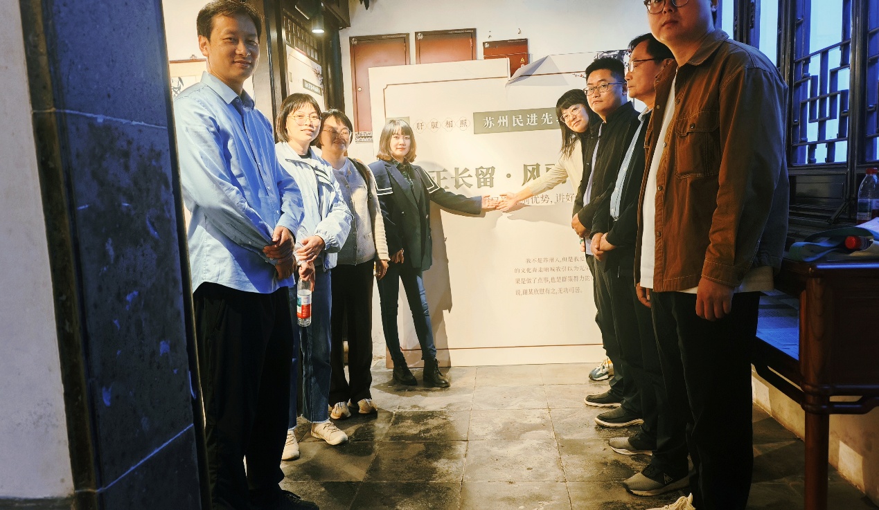 1日下午,教师党员首先参观了“清正长留,风雨同舟”纪念展,深入了解苏州古城守护人、美术教育家、社会活动家谢孝思在苏工作六十年来,为修复园林、保护古城而奔走呼号的光辉事迹,以及他为中国共产党领导的多党合作事业倾注毕生心血的感人历程。支部党员们深刻体悟老一辈革命家的崇高精神与历史情怀,进一步思考红色基因与中华优秀传统文化相互滋养、相得益彰的内在逻辑。
