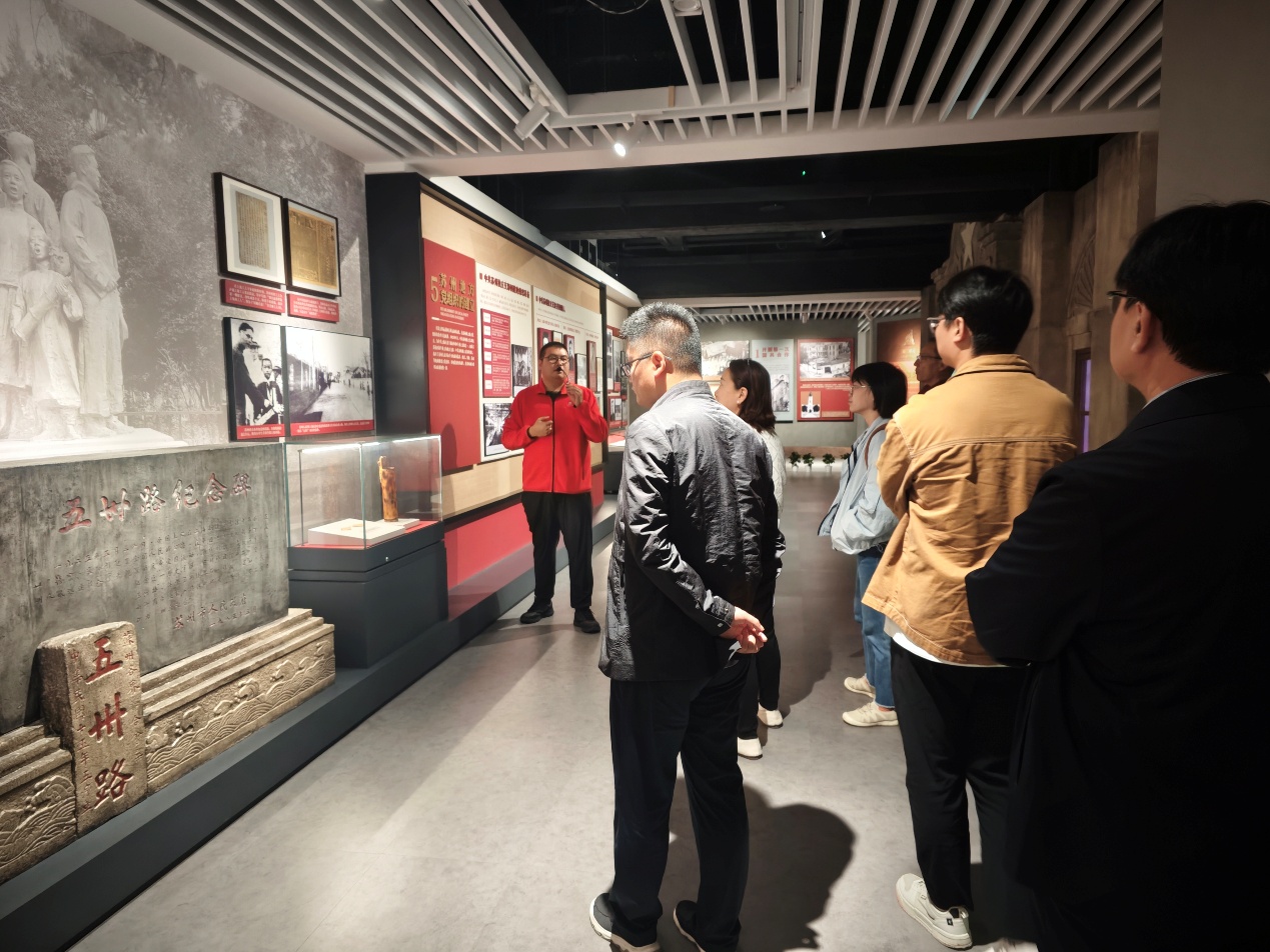 2日上午,党员教师们抵达苏州革命博物馆。馆内陈列着700余件珍贵的革命文物,其中“阳澄烽火”等专题展览生动再现了新四军在苏南地区英勇斗争的光辉历程,仿佛将大家带回那段硝烟弥漫的峥嵘岁月。在讲解员的深情讲述中,党员们深刻感悟到革命先辈在艰苦卓绝的环境中坚守信仰、不畏牺牲的崇高精神,接受了一次深刻的党性洗礼和革命传统教育。