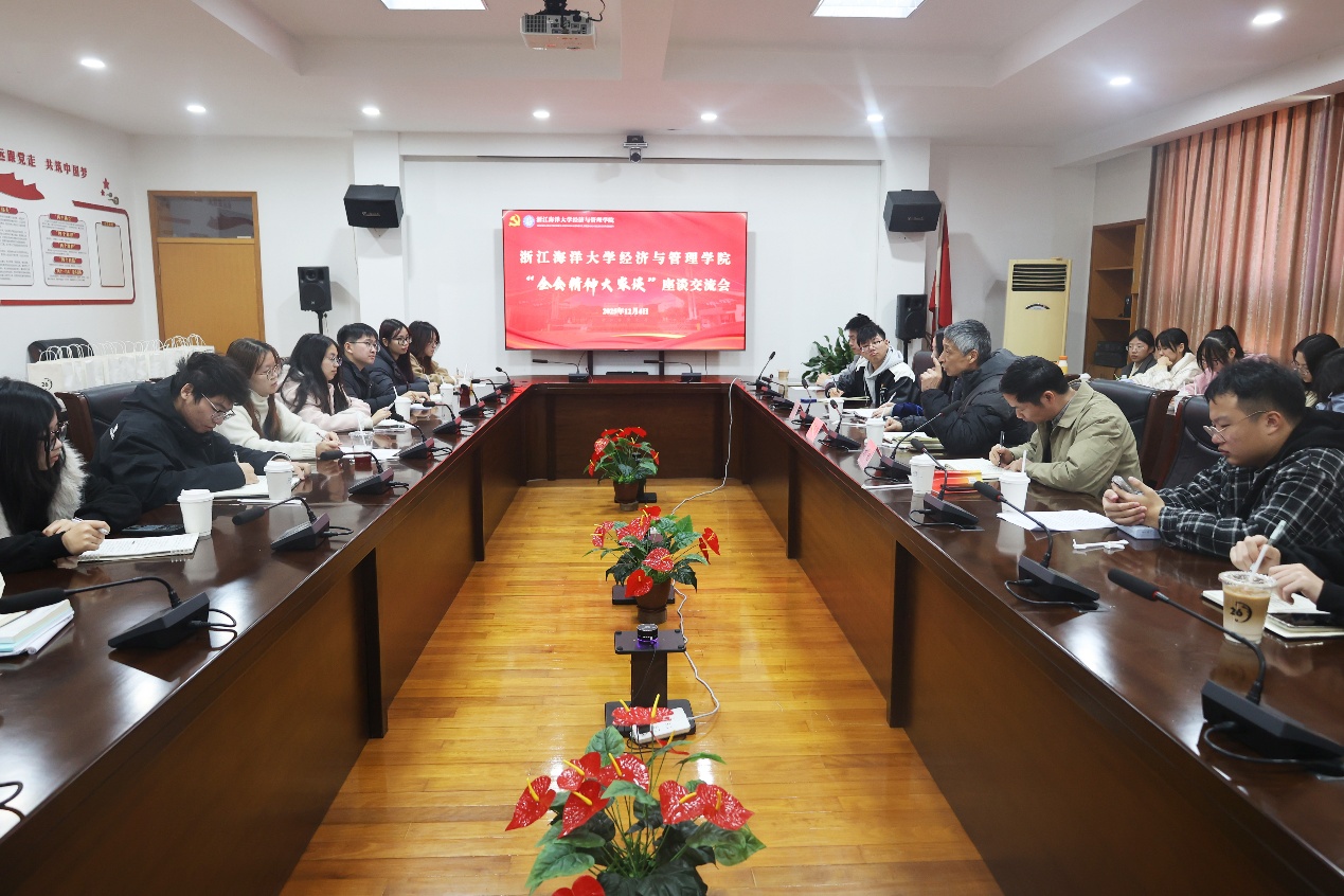 本次座谈交流会气氛热烈、交流深刻,既是一次理论学习的深化,也是一次思想碰撞的盛会。与会同学纷纷表示,将以全会精神为指引,把个人理想与国家战略紧密结合,在学术研究、社会实践、志愿服务和创新创业中锤炼能力、增长才干,为建设特色鲜明、国内一流的高水平海洋大学贡献经管力量。
